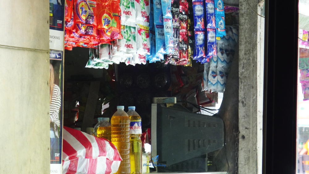 주로 세탁 가루비누,샴푸, 치약 같은 것들이 옛날 줄줄이 사탕처럼 길게 매달려있죠. 이런 모습은 개발도상국 상점에서 쉽게 볼 수 있는 모습들입니다. 우리나라 대형마트에서 파는 물건들처럼 큰 통에 들어있는 대용량 제품을 구매할 여력이 없기 때문에 필요할 때마다 조금씩 사 쓰는 소비형태가 일반화되어 있기 때문입니다. 여행자들을 위해 작은 포장으로 만들어 파는 것이 아닌 거죠.