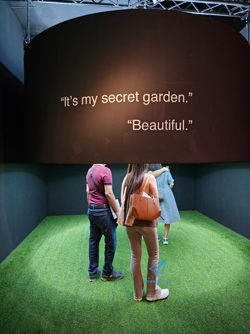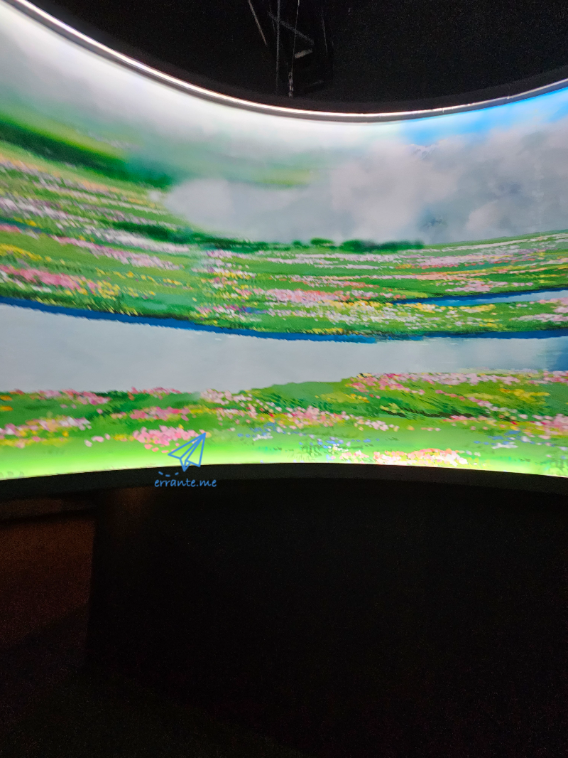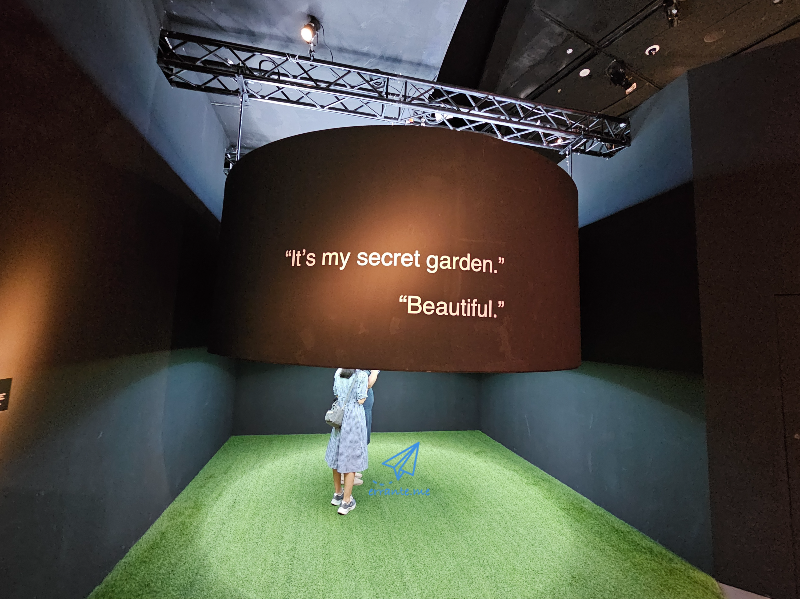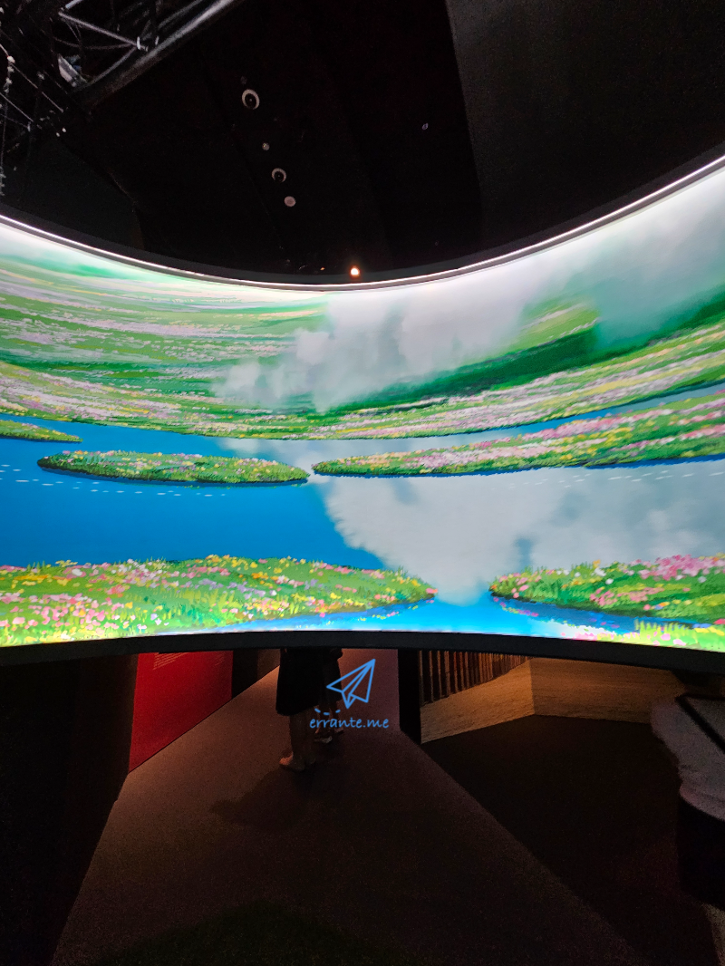 스튜디오 지브리 전시회의 하울의 움직이는 성 전시 공간의 마지막은 하울이 숨겨두었던 비밀의 정원입니다. 다른 전시와 달리 360도 원형 공간에 하울의 아름다운 정원이 그려져 있습니다.