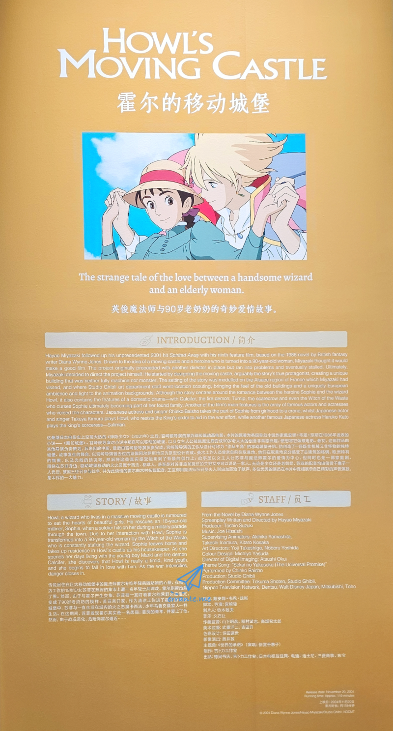 미야자키 하야오 감독은 2001년의 전례 없는 히트작인 <센과 치히로의 행방불명>에 이어 영국 판타지 작가 다이애나 윈 존스의 1986년 소설을 원작으로 한 9번째 장편 영화를 만들었습니다. 움직이는 성과 90세 여성으로 변하는 여주인공이라는 아이디어에 매료된 감독은 이것이 좋은 영화가 될 것이라고 생각했습니다. 이 프로젝트는 원래 다른 감독이 작업을 시작했지만 문제가 발생하여 중단되었고 결국 미야자키 하야오 감독이 직접 감독을 맡았습니다. 미야자키 하야오 감독은 이야기의 진정한 주인공이라고 할 수 있는 움직이는 성을 기계도 괴물도 아닌 독특한 건물로 디자인했습니다. 이야기의 배경은 감독이 방문했던 프랑스의 알자스 지방을 모델로 했으며, 스튜디오 지브리 미술부 직원들이 로케이션 스카우트를 진행하여 오래된 건물의 느낌과 독특한 유럽 분위기와 빛을 애니메이션 배경으로 가져왔습니다. 이야기는 여주인공 소피와 마법사 하울의 로맨스를 중심으로 전개되지만, 불의 악마 캘시퍼, 허수아비 카브, 그리고 소피를 저주했지만 결국 소피와 가족의 일원이 되어가는 황야의 마녀까지 등장하는 가정극적인 요소도 담고 있습니다. 이 영화의 또 다른 주요 특징 중 하나는 등장인물들의 목소리를 연기한 유명 배우들의 참여입니다. 일본의 배우 겸 가수 바이쇼 치에코는 소녀 시절부터 노파가 되기까지의 소피 역을 맡았고, 일본의 배우 겸 가수 기무라 타쿠야는 왕의 명령에 저항하여 전쟁에 참전하는 하울 역을, 또 다른 유명 일본 배우 카토 하루코는 왕의 마법사 설리만 역을 맡았습니다.