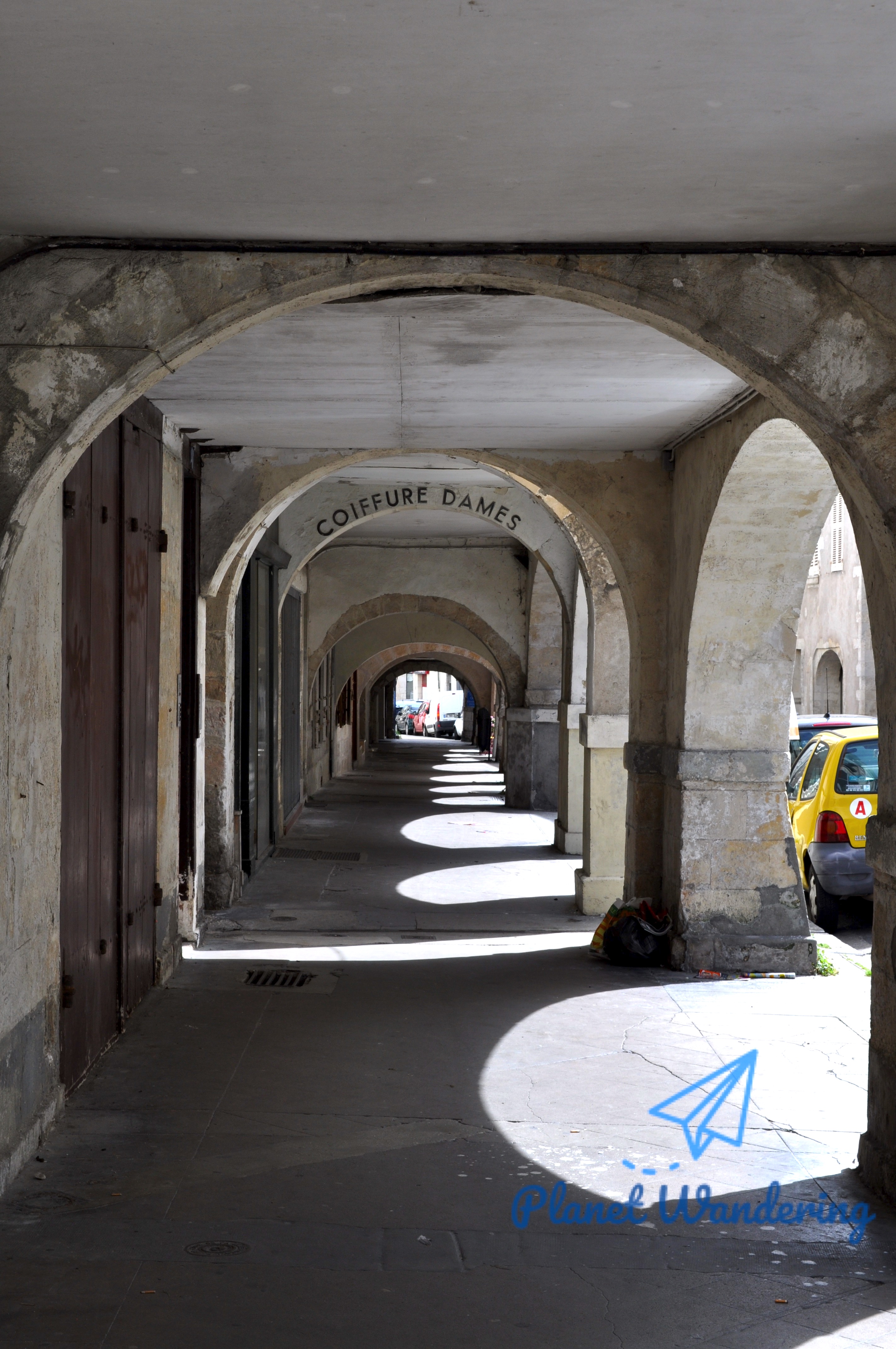 특이한 건 건물 1층의 도로쪽 공간이 지붕이 있는 인도라는 점입니다. 바로 천장 위는 건물 2층 바닥이 되는데, 이 구조도 회랑이라 부를 수 있는지 잘 모르겠네요. 이 회랑 형식의 인도가 제법 길게 이어지기 때문에 비나 강한 햇살을 피하며 걸어 다니기에는 참 좋은 구조입니다.