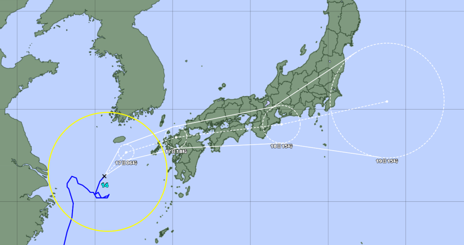 각 기상예보기관의 최대풍속 예상치도 유사하여 17일 새벽 3시에는 초속 23미터의 강풍이 불 것으로 보이며, 일본 내륙으로 진출한 이후까지 초속 20미터의 이상의 최대풍속을 유지할 것으로 예상됩니다.