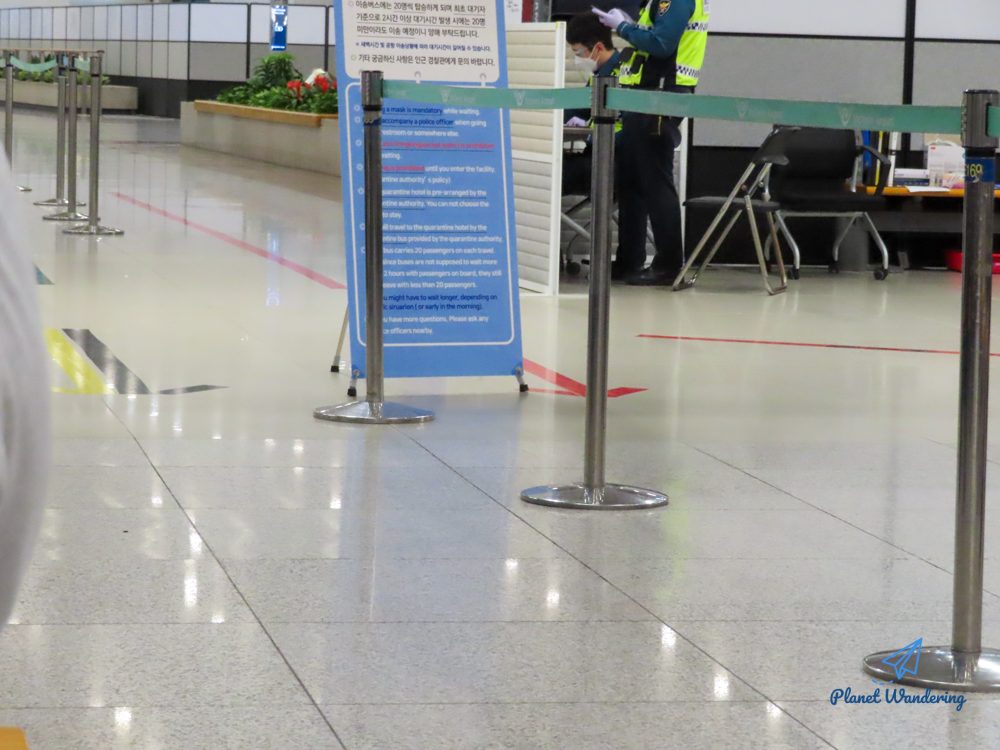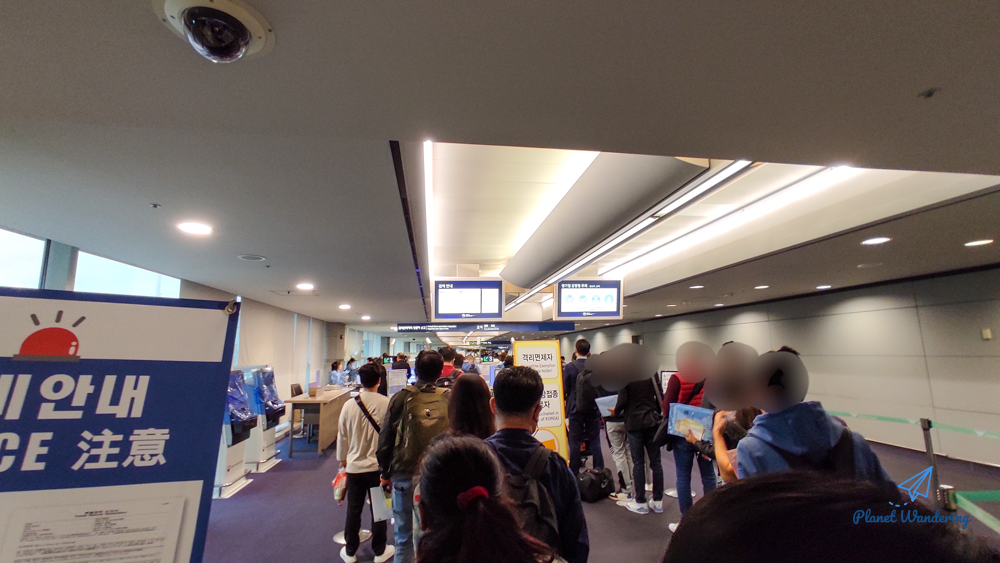 그래도 코로나 이후 시간이 많이 지나서인지, 방역당국 직원분들의 일처리와 승객인솔도 빨라지고 승객들도 별다른 불평 없이 통제에 잘 따르는 분위기였습니다. 열화상 카메라로 체온을 재고 건강 상태를 확인하는 검역 부스는 복도 한가운데 4개가 있지만 빠른 일처리를 위해 4개의 임시 부스를 더 운영하고 있었습니다.