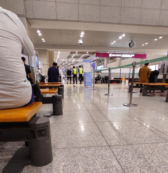 금방 숙소로 안내해 줄 것으로 생각했는데 아니었습니다. 로비 앞에 승객들이 모이자 공항 서편의 또 다른 공간으로 승객들을 안내했습니다. 이곳에서 버스가 올 때까지 기다리는 것인데 어디서 왔는지 명단을 새로 작성하기 때문에 여권과 탑승권을 또 보여줘야 합니다. 인천공항에 내렸다고 탑승권을 버리거나 깊숙한 곳에 넣어버리면 곤란한 상황이 발생하게 됩니다.