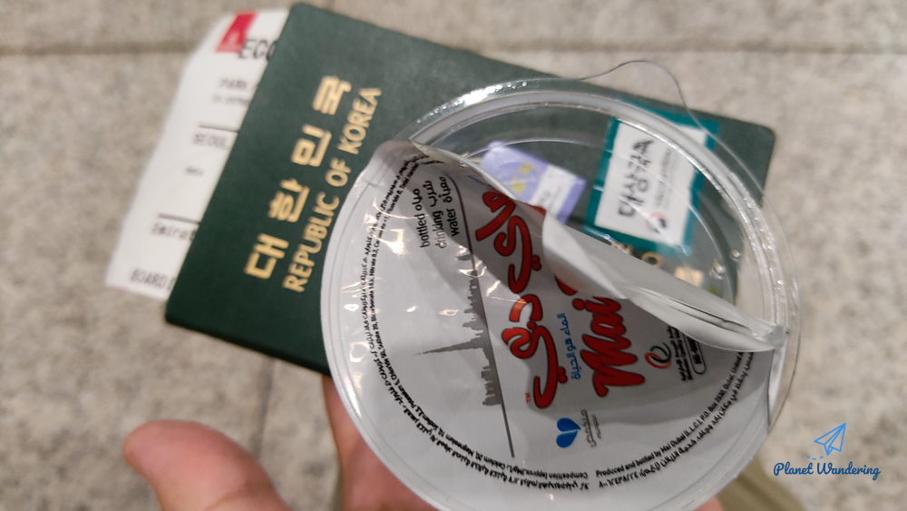 이렇게 기다리는 시간이 길어지면 배도 고프고 목도 마르게 됩니다. 이런 상황을 대비해 기내식에 따라 나왔던 물을 가지고 나왔습니다. 간식거리로 먹을 초콜릿과 기내식 빵도 들고 나왔는데 물만 마시며 시간을 보냈습니다.