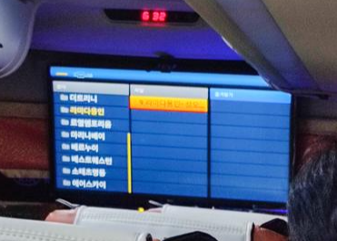 버스에 오르면 앞쪽 모니터에 호텔 이름들이 있습니다. 행선지 안내를 폴더 이름으로 대신하는구나 생각을 했는데,, 그게 아니라 호텔 이름 폴더 안에 그 호텔까지 가는 시간을 안내하는 안내방송 음성파일이 들어있었습니다. 꼼짝없이 용인 R호텔이 낙점된 것이죠.