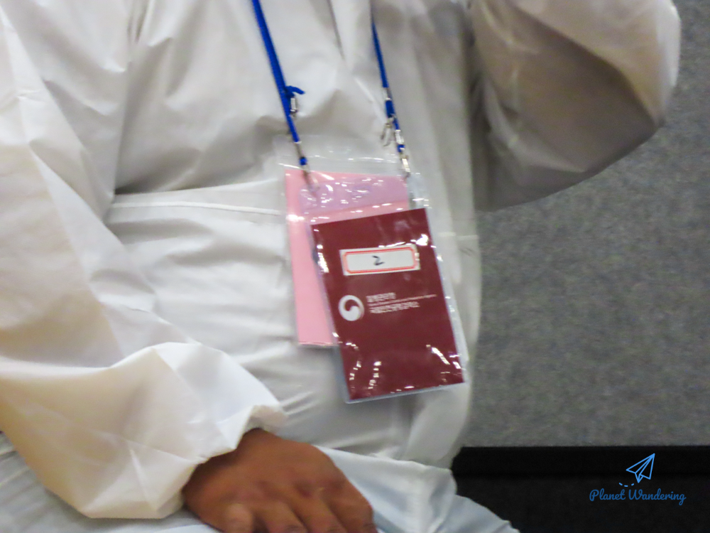 이 첫번째 부스에서 [외국에서 받은 음성확인서], [노란색 건강상태신고서]를 제출합니다. 직원분들이 승객이 어느 나라에서 왔는지, 예방접종은 완료되었는지, 음성확인서는 진짜인지, 건강상태에 이상이 없는지 등을 모두 확인한 후 여권에 몇 개의 분류 스티커를 붙여주고, 몇몇 분류자들에게는 색깔로 구분되는 목걸이를 걸어줍니다. 딴 데로 튀지 못하게끔 조치를 취하는 것이죠.