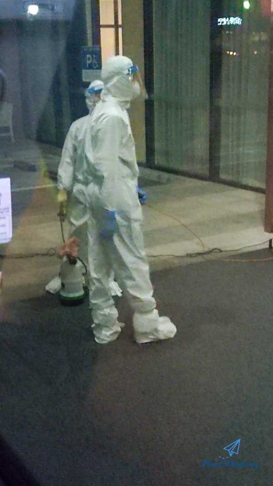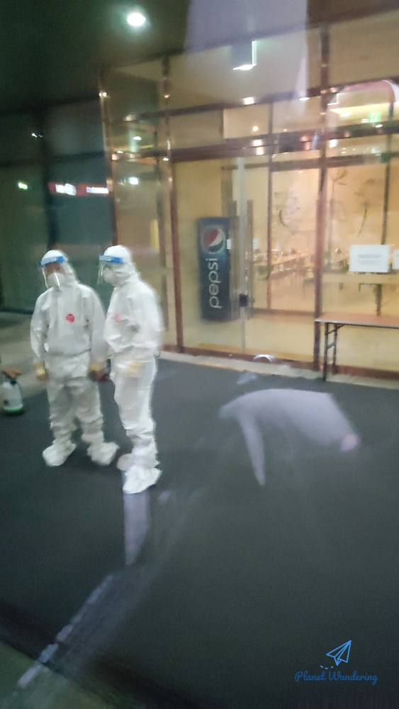 이 분들은 승객들이 내리기 전 목에 건 목걸이를 회수하는 동안, 화물칸을 먼저 열어 소독약을 뿌리고 승객들이 가지고 탄 짐을 한데 모아 소독약을 또 뿌립니다. 이 호텔은 무조건 7일, 14일짜리 격리를 해야 하는 외국인들을 수용도 하고, 1박을 하며 코로나 검사 결과를 받아야 하는 내국인들도 수용을 하고 있었습니다.