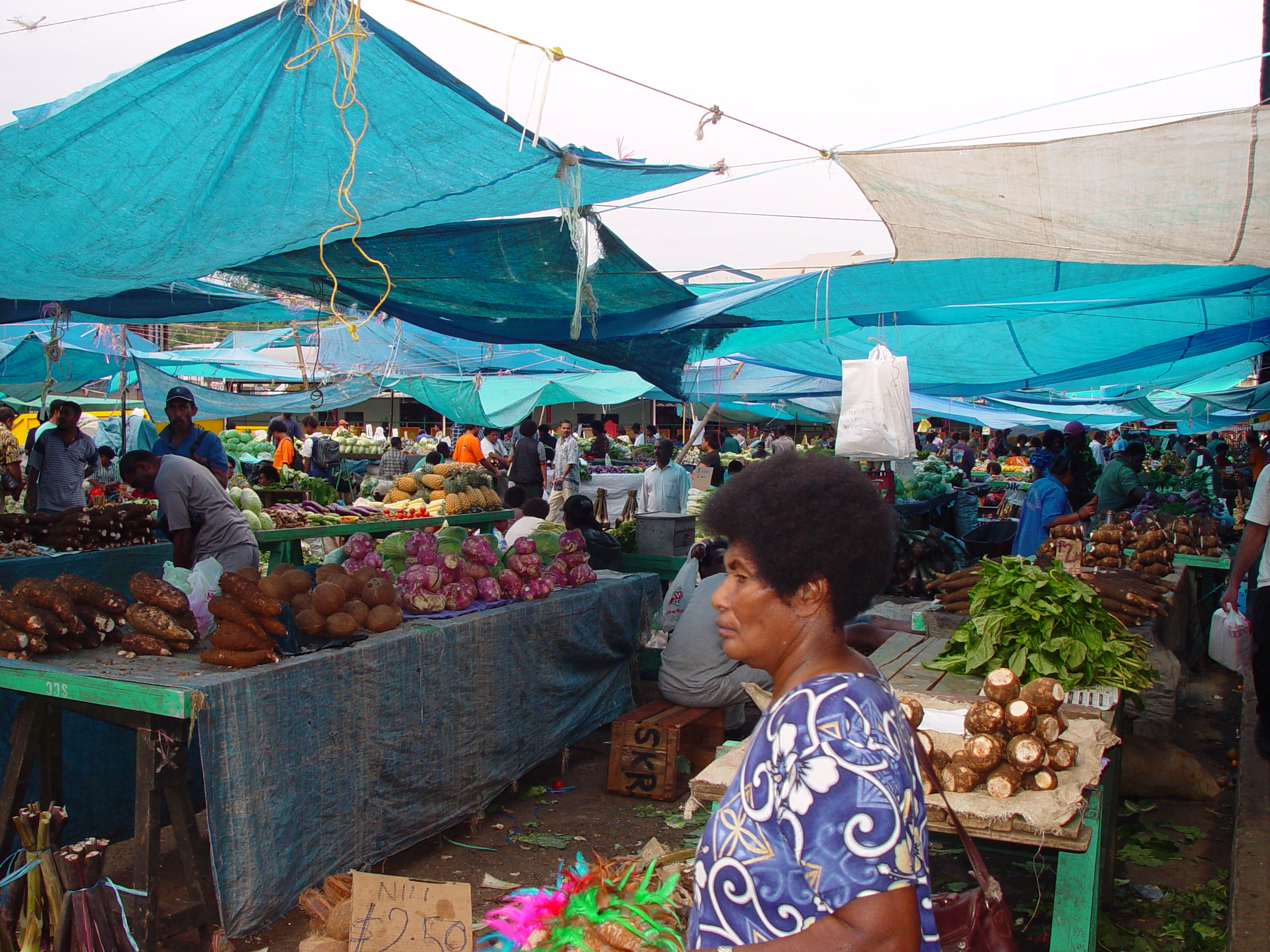 이름이 기억나지 않는 이 농산물 시장은 비교적 안전하다고 했습니다. 코코넛은 알겠는데 처음 보는 작물들이 많았고 농작물보다 더 신기한 건 처음 보는 멜라네시안 계통의 현지 주민들이었습니다. 우리나라와 왕래가 많지 않던 시절이니, 동양인 무리와 마주친 피지 사람들도 우리를 신기하게 쳐다보았죠.