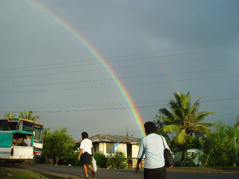 낯선 곳에 가게되면 운명에 의지하려는 심리가 강해집니다. 피지로 오는 비행기 안에서 도넛 섬을 만난 행운이 퀸즈로드에서 만난 쌍무지개로 이어진다고 믿게 되고, 이번 여행 또한 행운이 가득할 거라는 근거 없는 기대를 하게 됩니다. 날이 어두워지기 전에 수바까지 가야 하지만 중간에 차를 세워 무지개를 사진에 담는 사치를 누립니다.
