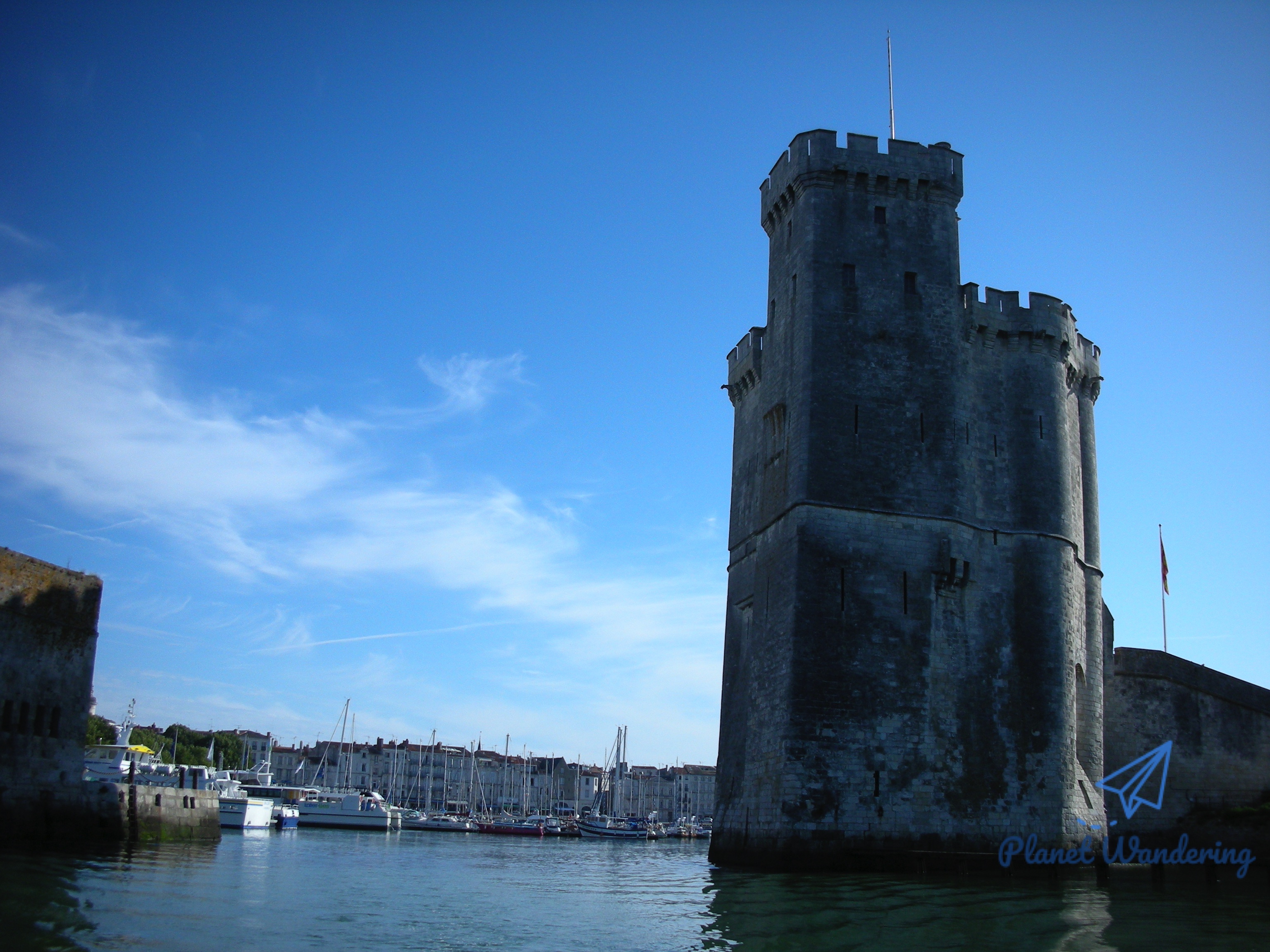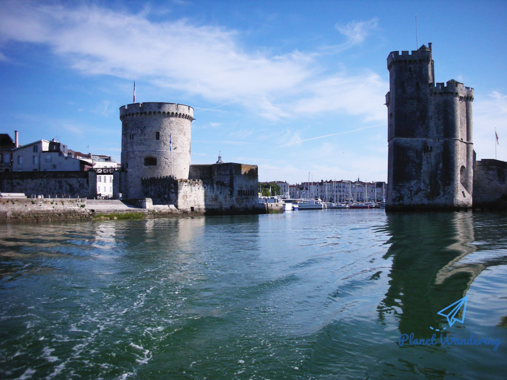 바다 위에서 바라본 라 로셸 항구의 모습입니다. 이 항구를 Vieux Port, 즉 올드포트 라고 부르는군요. 항구 입구를 좌우로 나눠 지키는 이 석조 타워는 오른쪽의 사각형 모양이 Tour Saint Nicolas이고 왼쪽의 원형 타워가 La Tour de la Chaîne 입니다.