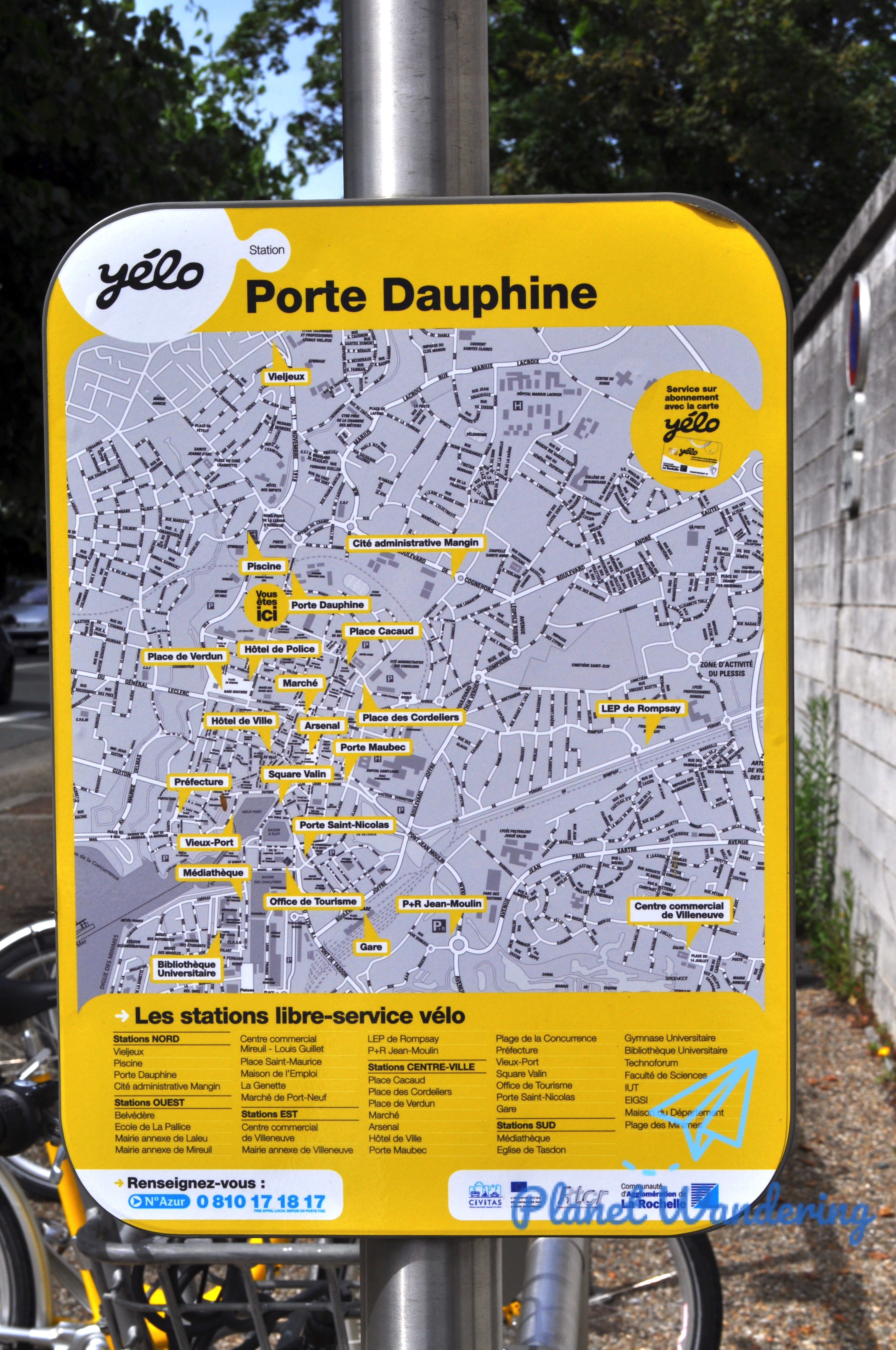 자전거를 빌려 타고 되돌려줄 수 있는 지점들이 지도에 표기되어 있습니다. 그런데 무작정 걸어온 곳이 라 로셸의 또 다른 기차역 La Rochelle-Porte Dauphine 입니다.