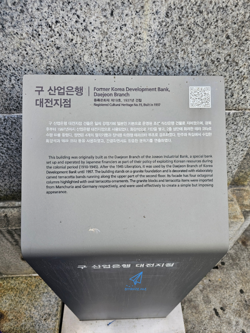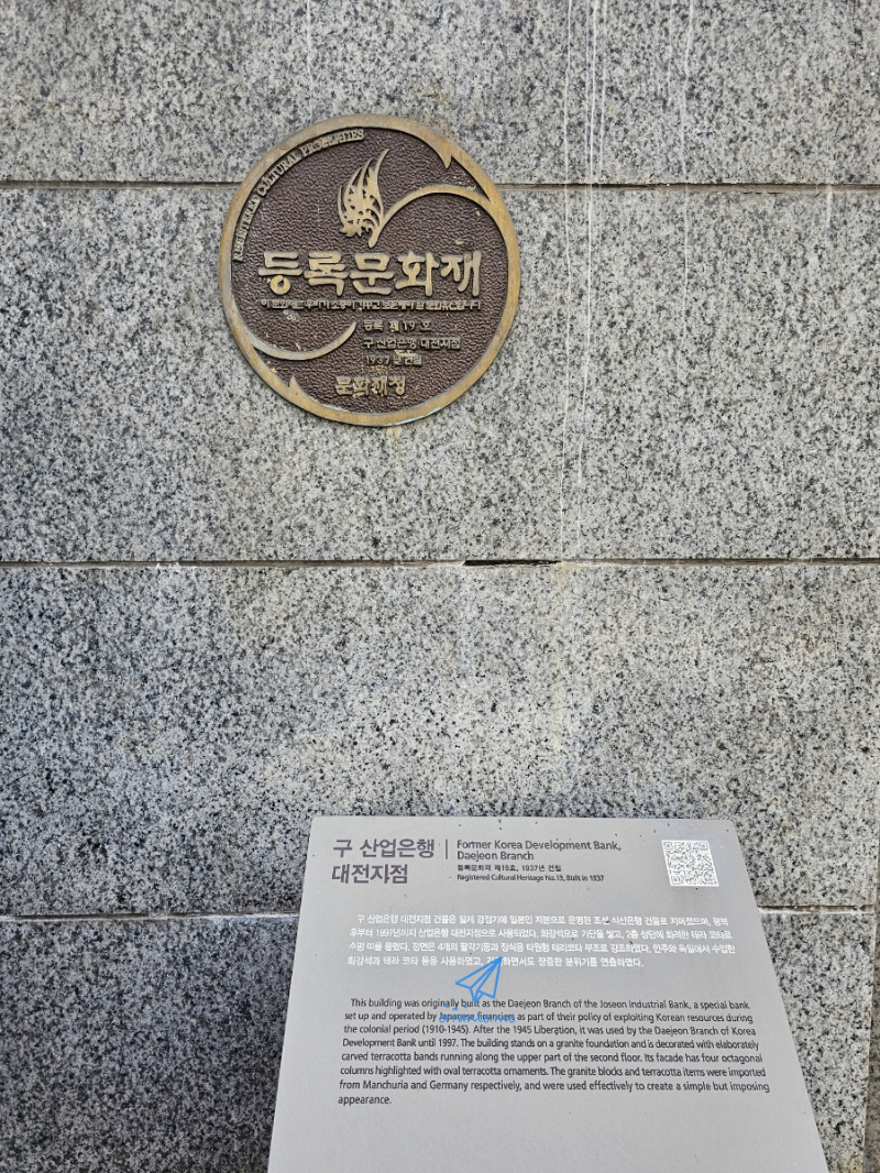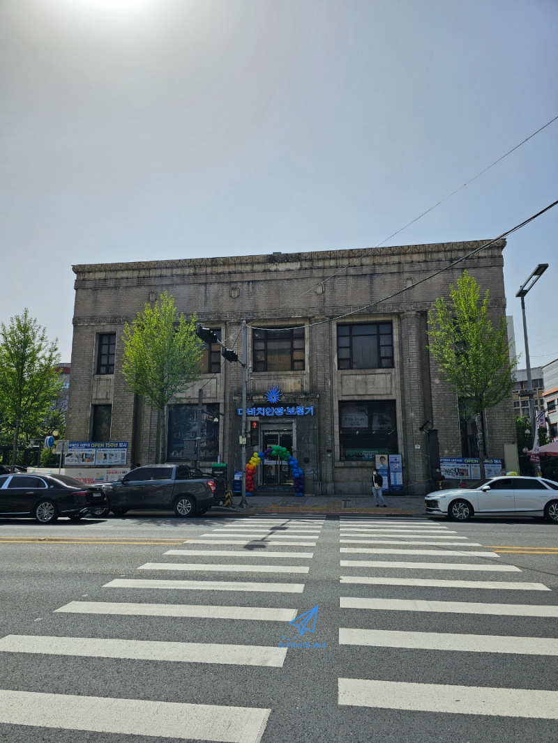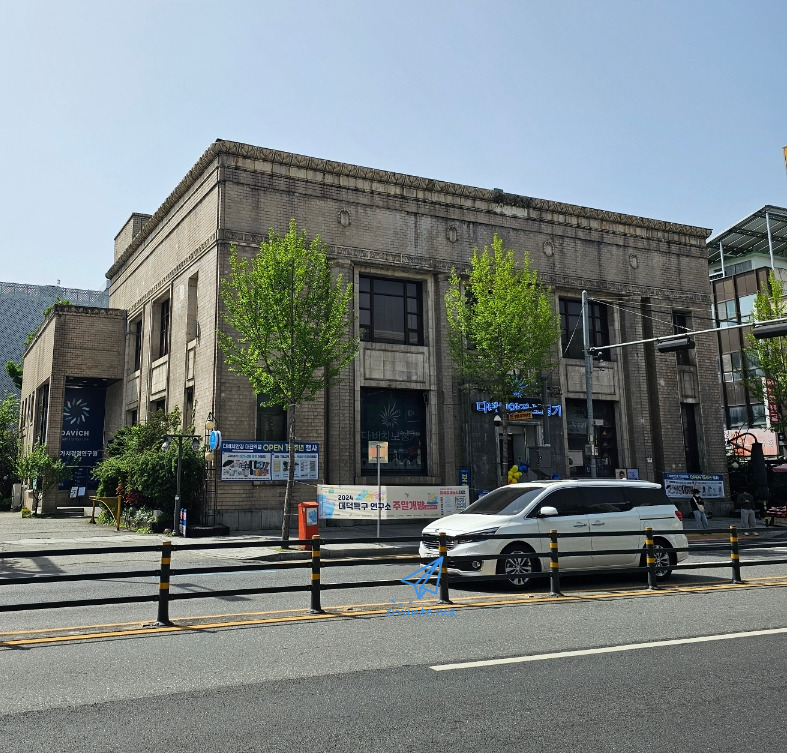중앙시장을 빠져나오면 화려한 분위기의 오래된 건물이 보입니다. 지금은 다비치 안경원이 입점해 있는데 원래는 옛 산업은행의 대전지점으로 사용된 건물입니다. 일제 강점기 일본인이 세운 조선 식산은행 건물로 지어졌고 광복 후 1997년까지 산업은행 대전지점이 들어와 있었습니다.