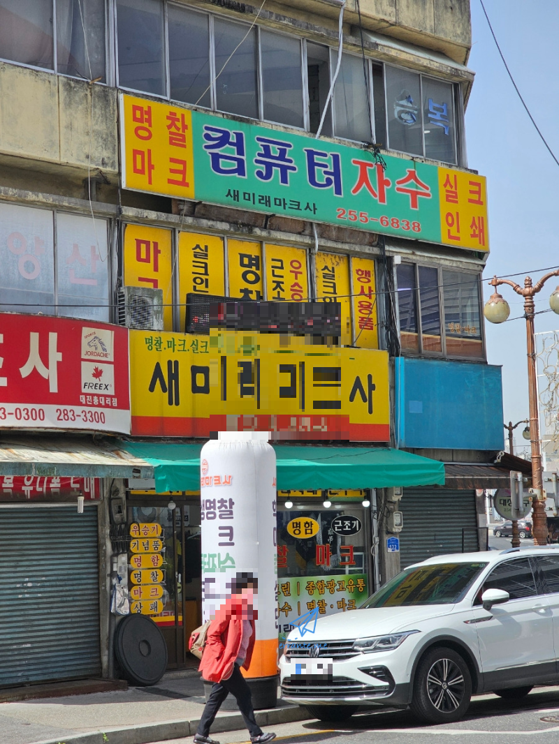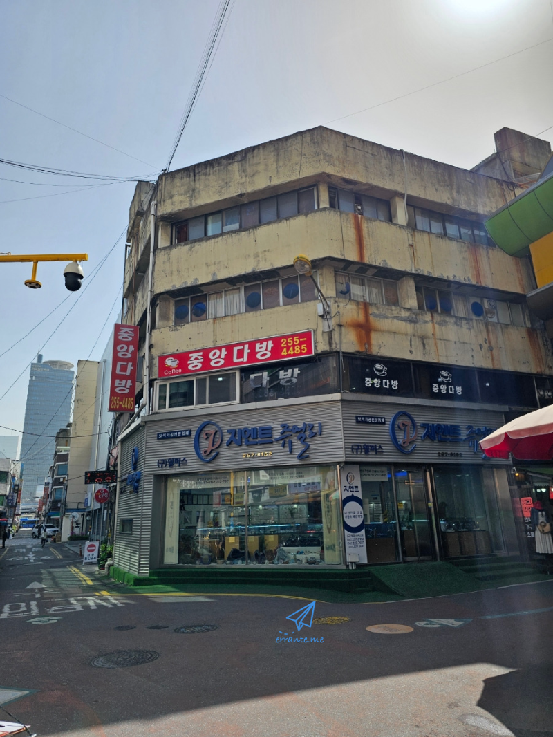 시장 밖으로 나왔습니다. 시장과 역사를 같이 해온 오래된 건물들이 많습니다. 컴퓨터 자수로 명찰과 마크를 만드는 자수집도 있고, 시장 이름을 딴 다방들도 아직 있네요.
