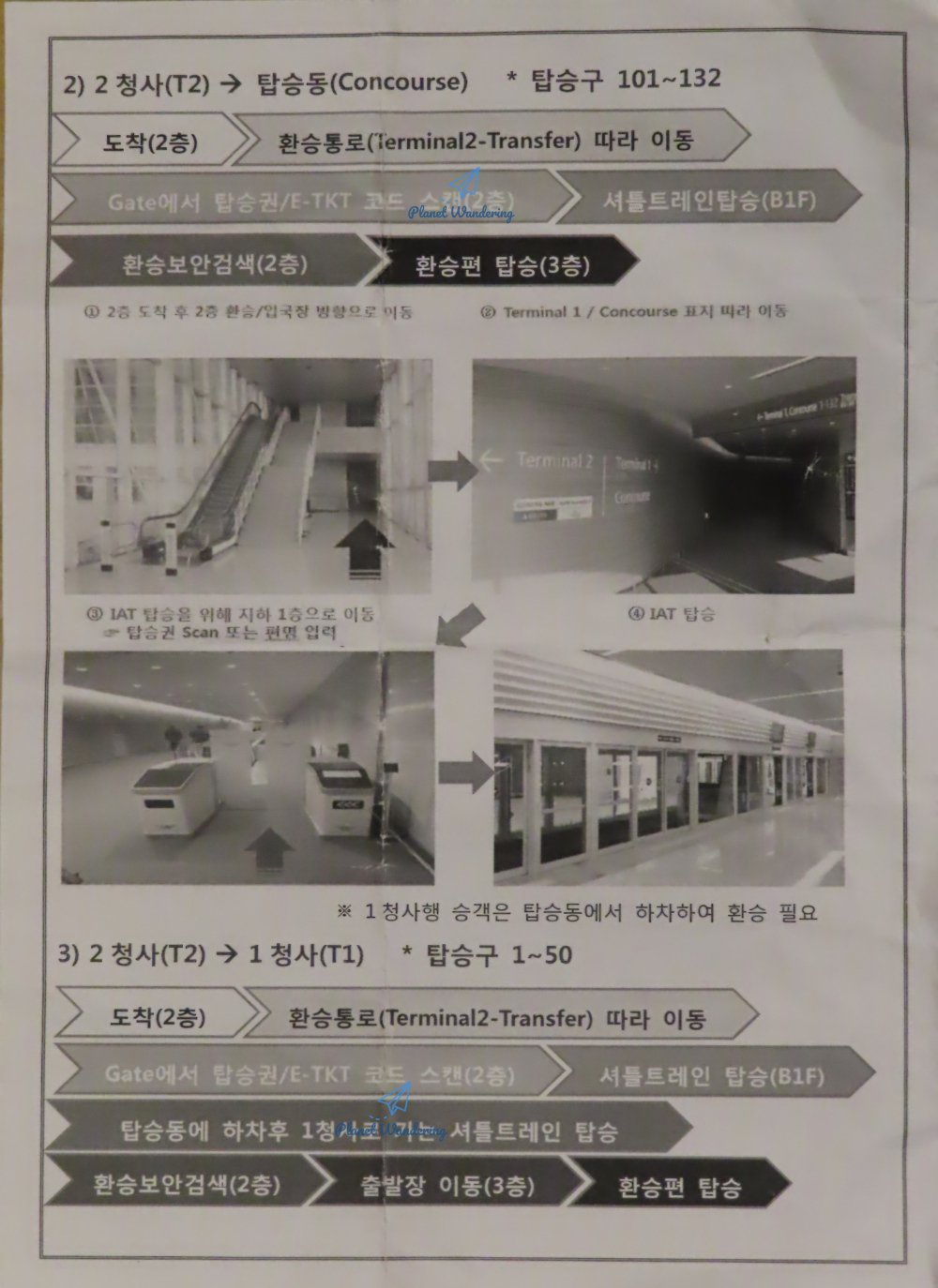 내항기 탑승 수속을 마치면, 탑승권 2장 (인천행, 해외 목적지행)과 함께 주의사항 안내문을 줍니다. 대한항공 등 인천공항 2터미널을 그대로 이용해서 외국으로 나가는 비행기를 타는 분들은 특별히 주의할 내용이 없습니다. 도착 후에 에스컬레이터를 타고 한 층 올라가면 그대로 면세점과 탑승구들이 있는 공간이 나오니까요.