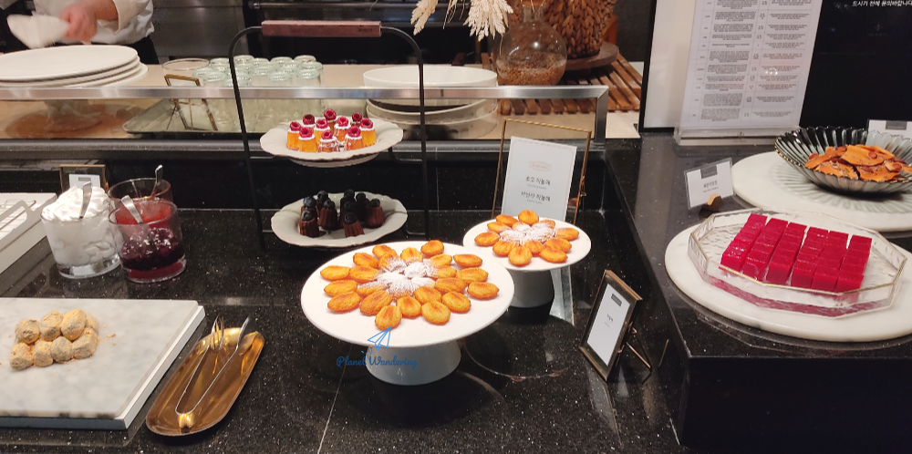 아이들이 좋아할 디저트 코너도 예전과 비슷한 모양새였습니다. 쿠키와 케이크, 떡 등이 다양하게 준비되어 있었는데, 더 파티에 오면 늘 드는 생각이 '사람들이 가장 적게 소비하는 디저트 종류가 왜 이렇게 많을까, 제 기간에 다 소비할 수는 있나' 하는 생각입니다. 주방 안쪽에 벌크로 비닐봉지에 포장된 쿠키를 슬쩍 봤는데 유통기한은 넉넉하게 남아있는 제품이었습니다. 더 파티는 이런 음식 관리는 아주 철저한 회사죠.