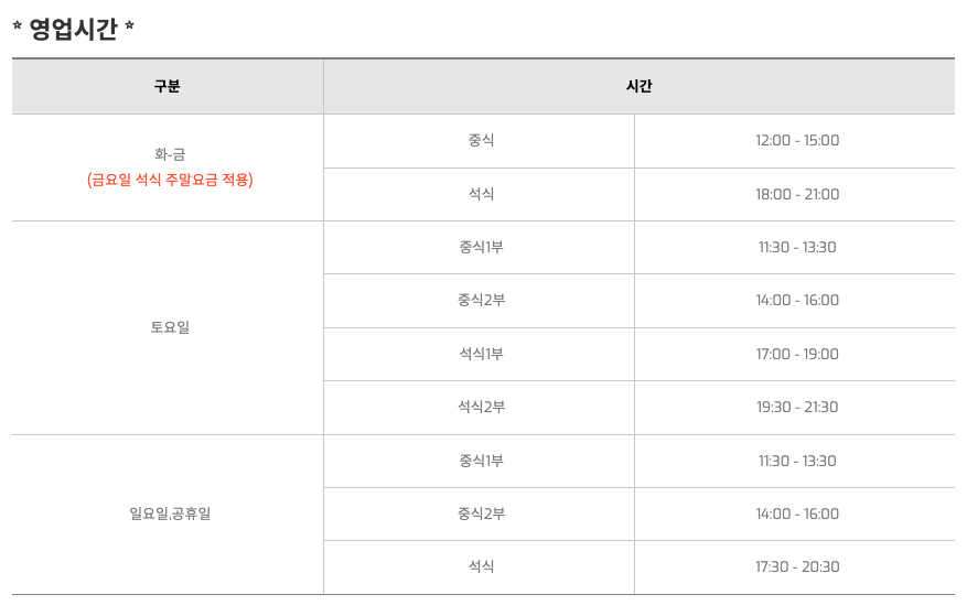 주말과 휴일은 식사가 1,2부로 나뉘어 시간제한이 있고