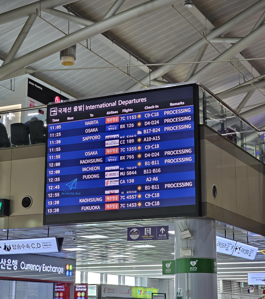 부산 출발 시각은 낮 12시 35분. 김해공항은 공항 규모도 작고 비행 편수도 적은 편이라 굳이 3시간 전에 체크인 카운터 앞에 줄을 서지 않아도 됩니다.