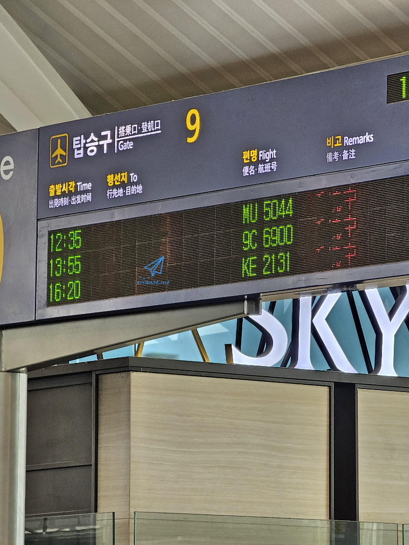 인천공항 같으면 출발 3시간 전인 9시 35분, 또는 그보다 더 먼저 카운터가 체크인 업무를 시작했을 텐데, 동방항공은 아예 2시간 15분 전인 10시 25분에 체크인을 시작한다는 안내문을 걸었습니다.