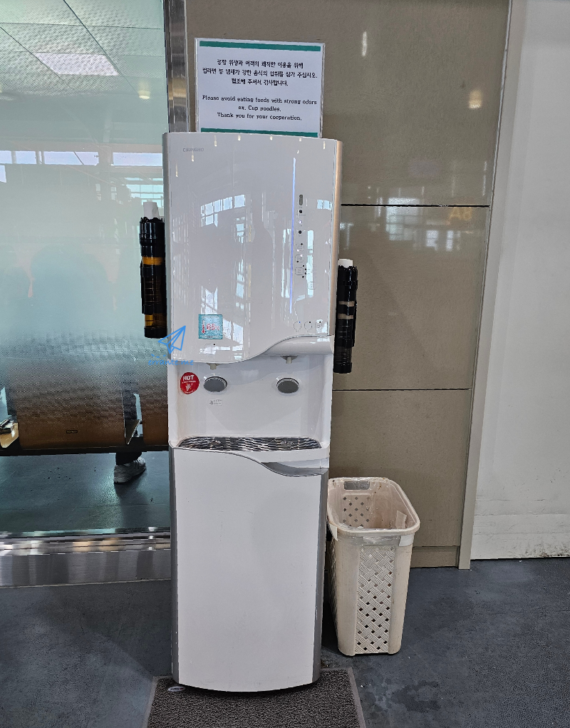 누구나 이용할 수 있는 정수기도 김해공항의 깨알같은 좋은 점이죠. 인천공항은 랜드사이드에도 뜨거운 물을 찾을 수 없어서, 공항 편의점에서 구입한 컵라면도 먹을 수 없는 황당함이 있습니다. 인천공항 에어사이드에도 뜨거운 물이 나오는 정수기가 한두 대 남아있었는데, 어느새 사라지고 말았죠.