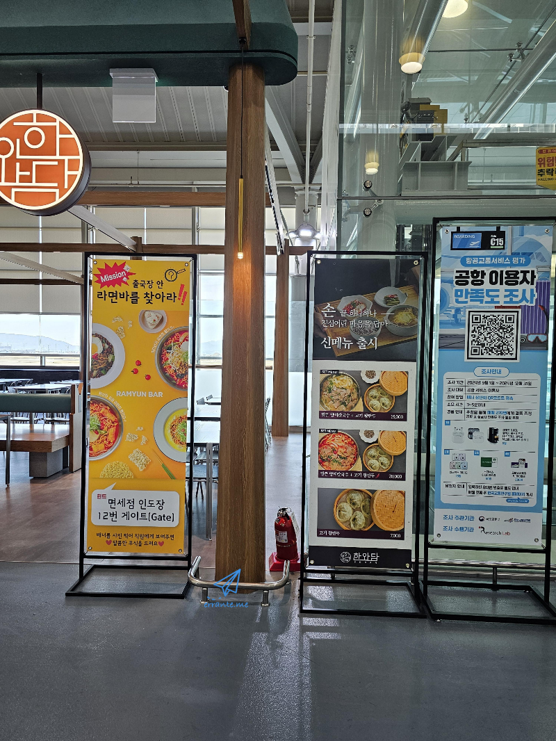 하지만 김해공항은 정수기 뜨거운 물을 이용할 수 있어서 보온병에 물을 담기도 편하고 (먹지 말아 달라고는 하지만) 컵라면도 슬쩍 먹을 수 있어 좋습니다.