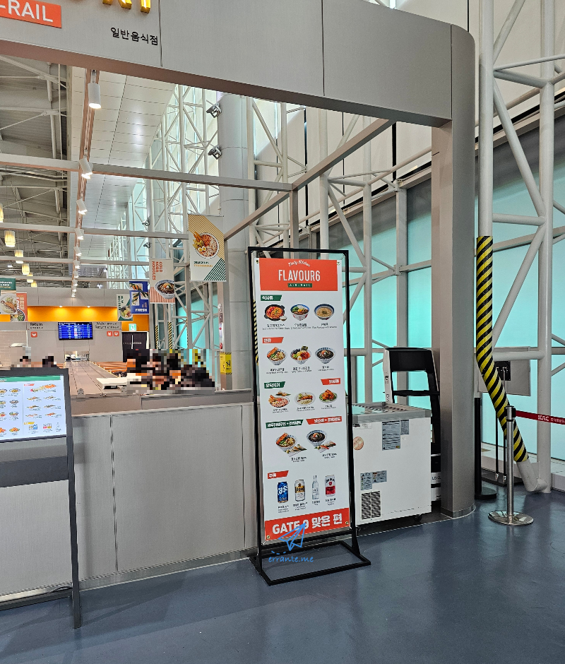탑승시간이 가까워져 1층으로 내려왔습니다. 몇몇 음식점들이 보이네요. 에어레일 이라고 이름 붙은 이 식당은 테이블 앞 레일을 따라 음식이 나오는 서빙 방식으로 운영하고 있군요.