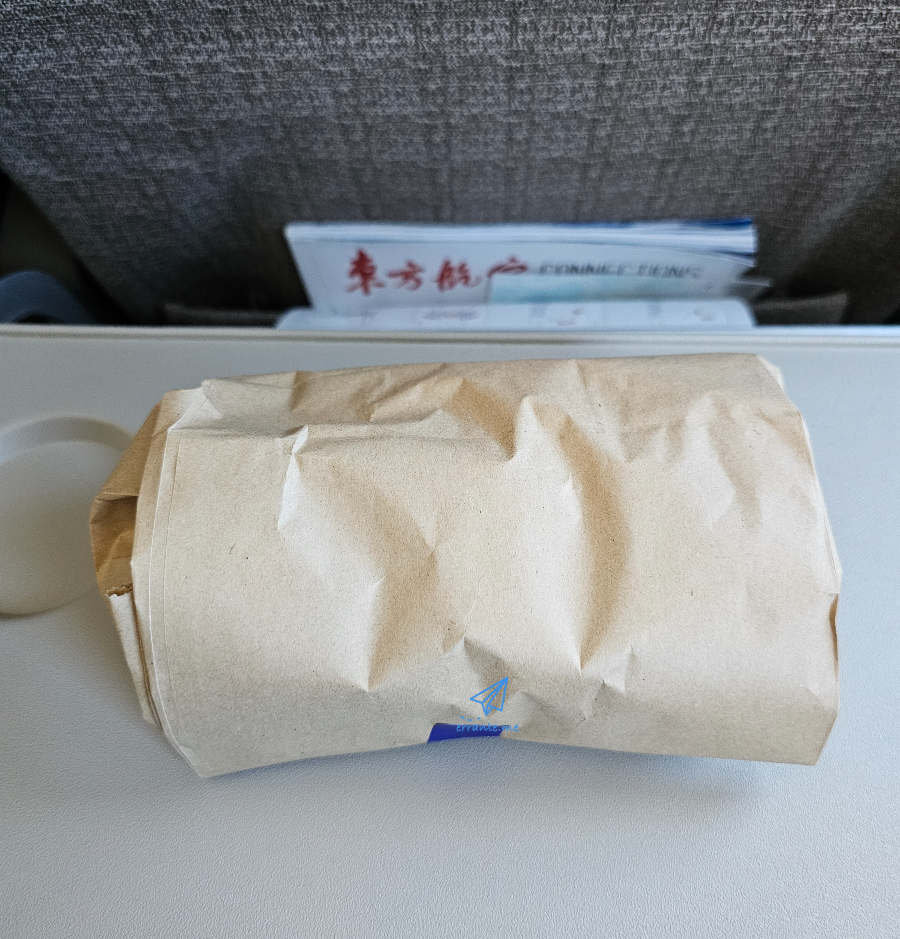 10년 전에 중국동방항공을 여러 차례 이용했습니다. 그때는 여느 국제선 항공사와 다를 바 없는 풀 세트의 식사가 제공되었습니다. 그런데 이날 기내식은 뭔가 좀 특이합니다. 승무원들이 재생용지로 만들었을 것 같은 누런 봉투를 하나씩 나눠줍니다. 기내식이 상당한 간편식으로 변했구나라는 생각을 하게 됩니다. 뭐가 들었을까요?
