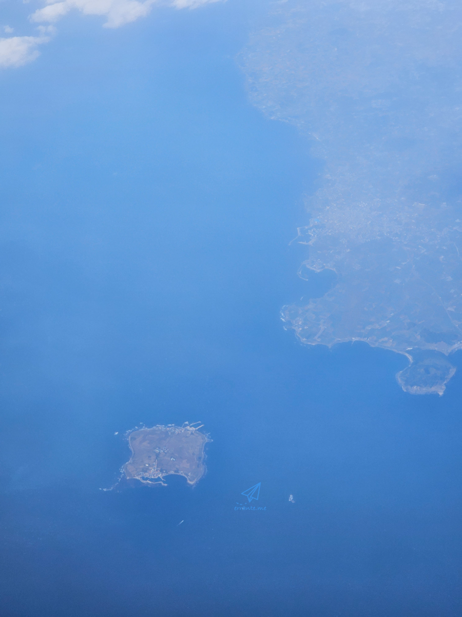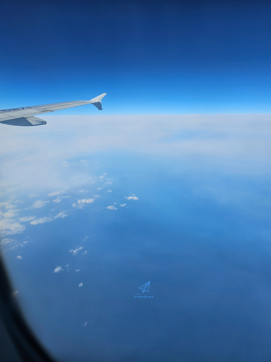 기내식을 다 먹고 치웠을 즈음, 어디까지 왔을까 싶어 창밖을 내다봅니다. 일부러 바깥 구경을 하려고 창가 자리를 미리 추가금을 주고 선택했고, 날개에 시야가 가리는 걸 피하려고 맨 뒷자리를 골랐죠. 비행기 바깥 구경을 할 때는 멀리 지평선만 바라보는 게 아니라 창 바로 밑 풍경도 살펴봐야 더 재미가 있죠.