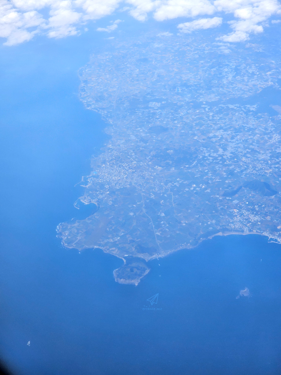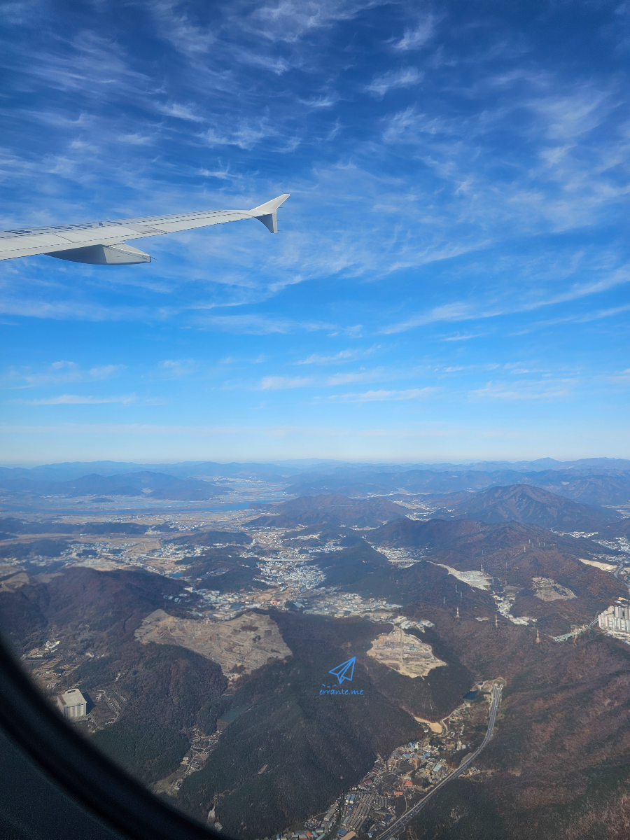비행기가 출발했습니다. 부산에서 상하이로 가는 비행기는 우리나라 남해안을 따라 서쪽으로 이동하고 제주도를 지나 상하이로 향하게 됩니다. 발 아래로 남해안 도시와 자연의 풍경이 펼쳐집니다.