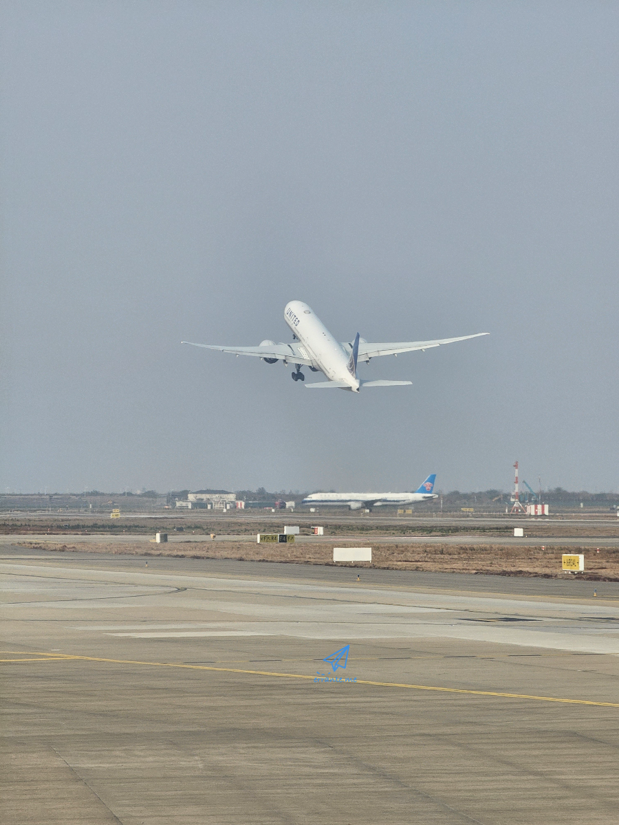게이트로 가는 동안 출도착하는 비행기들이 보입니다. 미국으로 떠나는 유나이티드항공 비행기, 이륙을 준비하는 중국남방항공 비행기도 보입니다.