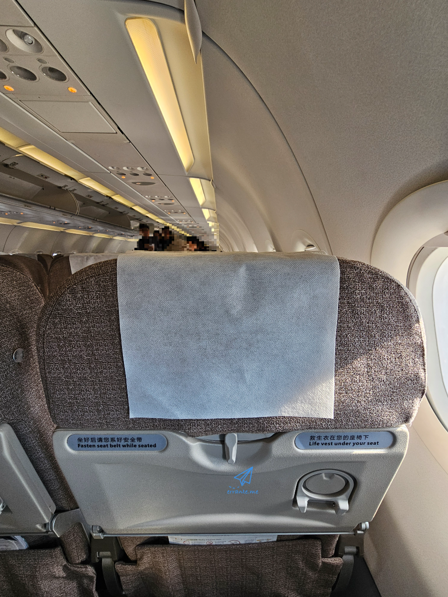 맨 뒤에서 하나 앞 창가 자리에 앉았습니다. 단거리 노선이라 그런지 장거리 노선에 좌석마다 붙어 있는 엔터테인먼트 모니터는 보이지 않습니다. 중국 비행기라면 상상해 볼 수 있는 머리 받침 부직포의 요란한 한자 광고도 없습니다. 뭔가 허전한 느낌이네요.