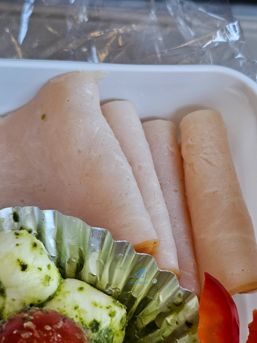 치즈볼은 탱글탱글 탄력이 좋고, 파프리카도 아삭한 게 좋았습니다. 파스타 사이로 오징어도 들어있는게, 기내식 이름을 치즈볼 해물 샐러드(?) 정도로 붙이면 되지 않을까 싶었습니다.