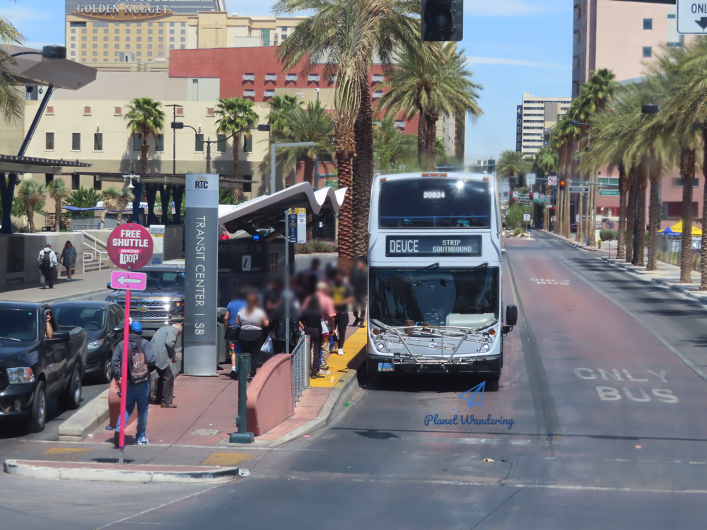 듀스 버스는 라스베이거스를 돌아다니는 교통수단이기도 하지만, 시티투어를 대신하는 관광수단이기도 합니다. 관광객이 숙소를 나서기 전인 이른 시간대에 듀스를 잡아타고 종점인 남쪽 환승센터로 갑니다. 종점에 도착한 듀스는 곧바로 운행을 다시 시작하지 않습니다. 환승센터 건물로 들어가 반대쪽으로 가서 기다리면 새로 출발하는 버스가 나오죠.