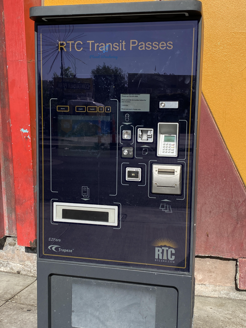 듀스를 타고 내리는 모든 정류장에 패스 자판기가 있는 건 아닙니다. 노선도에 [TVM]이 표기된 주요 정류장에 자판기가 설치되어 있죠. 자판기에 현금을 넣거나 신용카드로 패스를 구매할 수 있습니다. 왼쪽의 모니터를 터치해서 원하는 패스를 구매할 수 있는데 라스베이거스처럼 햇볕이 작렬하는 환경에서는 모니터가 빛에 가려 잘 보이지 않을 때가 많아 불편합니다.