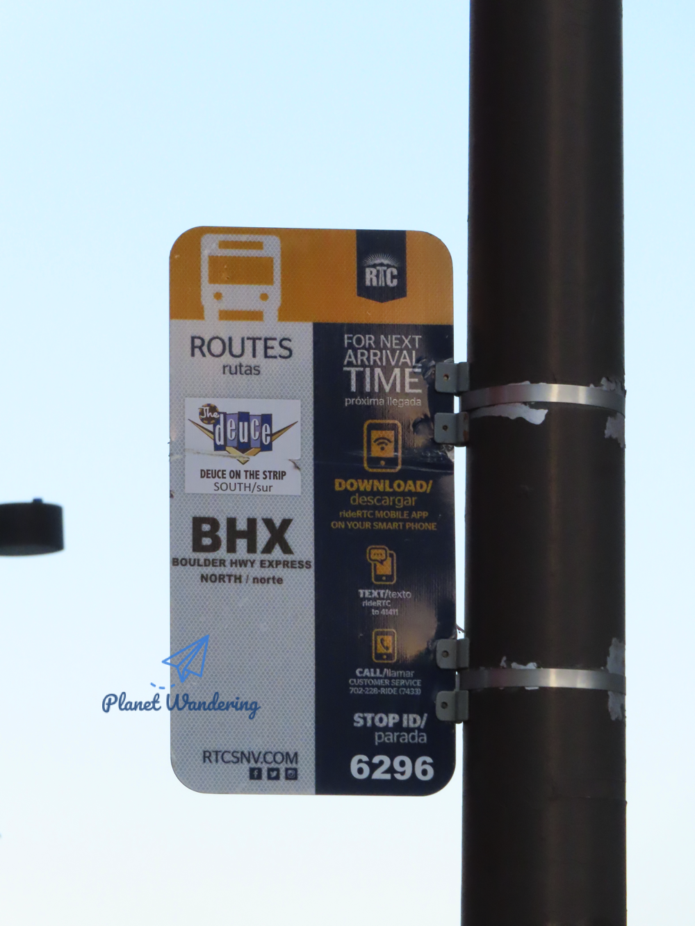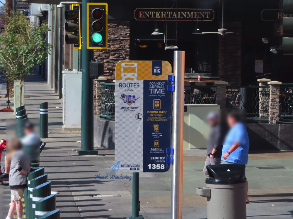 듀스 버스 정류장에는 아래와 같은 표지판이 있고, 늘 관광객으로 북적이기 때문에 정류장을 찾지 못할 염려는 없습니다. 승객이 많은 정류장에는 전 세계에서 모인 관광객들, 미국 타 지역에서 온 관광객에 라스베이거스에서 생활하는 주민들까지 뒤엉켜 혼잡스러운 분위기가 자주 연출되죠. 관광객이나 주민들은 크게 신경 쓸 필요가 없지만 노숙자나 구걸하는 사람, 술에 취해 정신을 반쯤 놓은 사람들이 종종 있는데, 아주아주 가끔 이들이 말을 걸거나 시비를 거는 경우는 있을 수 있으니 조금은 주의할 필요가 있습니다.