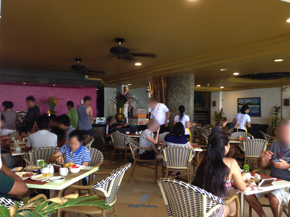 뷔페식으로 나오는 아침식사는 아주 심플하지도, 아주 호화롭지도 않은 적당한 수준입니다. 맛있게 먹고 사진도 찍어 자랑할 수준은 되죠. 점심시간과 저녁시간에는 별도로 돈을 받는 뷔페가 열립니다. 가격 대비 먹을 만 하지만, 디몰에 가도 음식점이 많고 보라카이 하이웨이라 불리는 (그냥 왕복 2차선 시내도로이지만) 메인 도로를 따라 음식점들이 많이 있기 때문에 굳이 호텔 점심 저녁을 찾지 않아도 불편함은 없습니다.