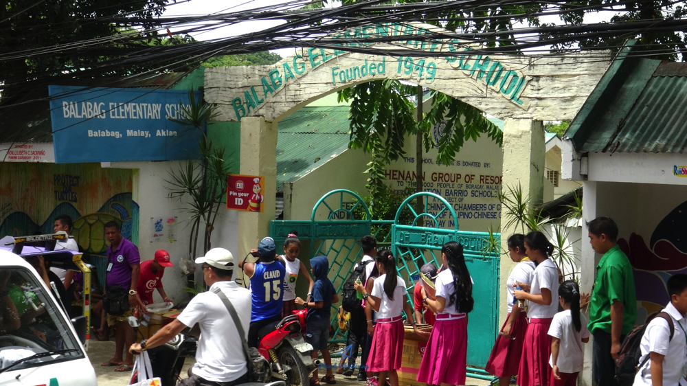 보라카이 메인도로에서 곁길로 조금 들어가니 초등학교가 나옵니다. 더운 나라의 학교들은 유리창도 없거나 대부분 열려있어 학교 안이 훤하게 들여다 보이죠. 마침 이날은 수업이 없거나 끝난 시간이었던 것 같네요. 교실 안이 텅 비어있습니다.