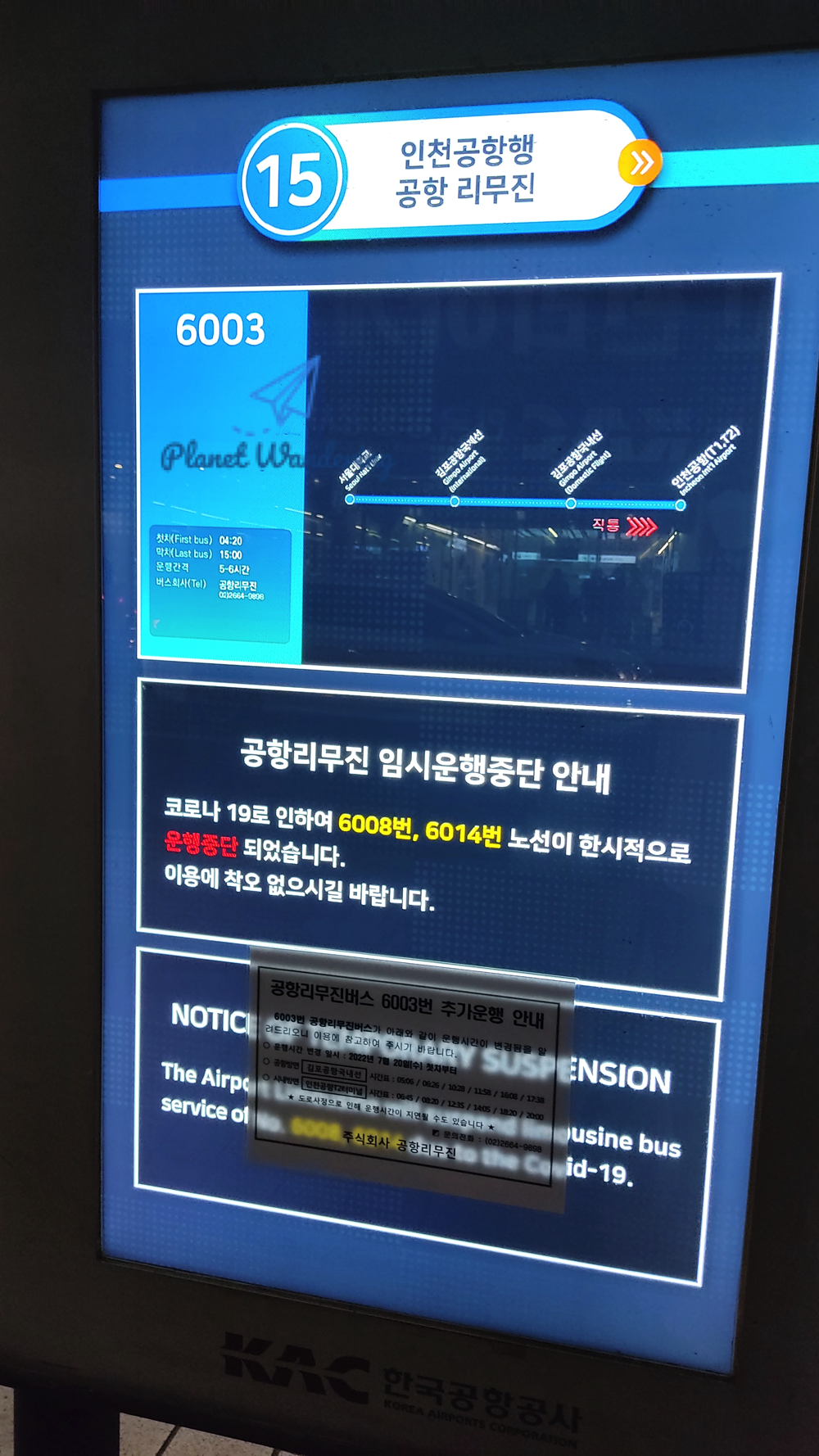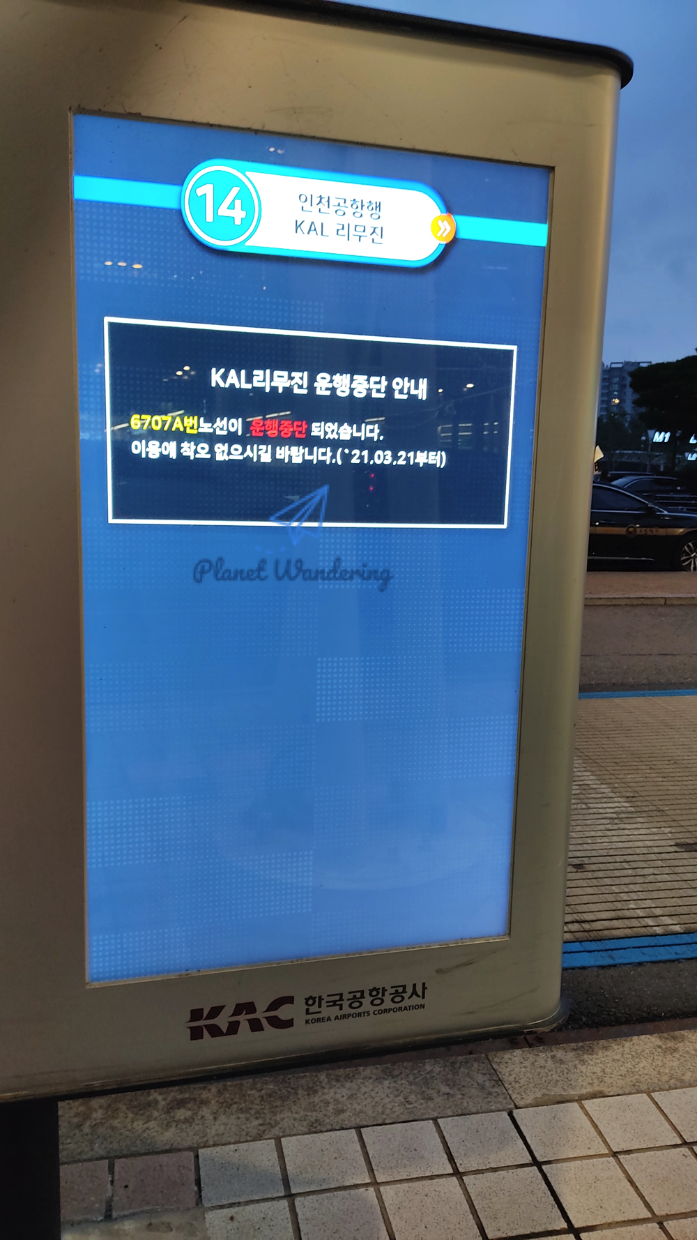 하지만 코로나가 상당히 풀린 지금도 직행 리무진버스는 운행을 하지 않고 있습니다. 2020년 코로나 상황에서 도 하루에 한두 번씩 운행을 이어가던 서울 시내 칼 리무진 버스도 지금은 운행을 하지 않고 있습니다. 김포공항을 거쳐 인천공항으로 가는 몇몇 공항버스(시내버스 혹은 좌석버스)가 운행을 재개했지만 김포공항에서 인천공항으로 가는 여행객의 수요를 충족하기에는 부족함이 많은 상황이죠.