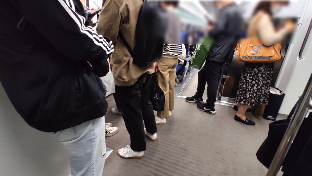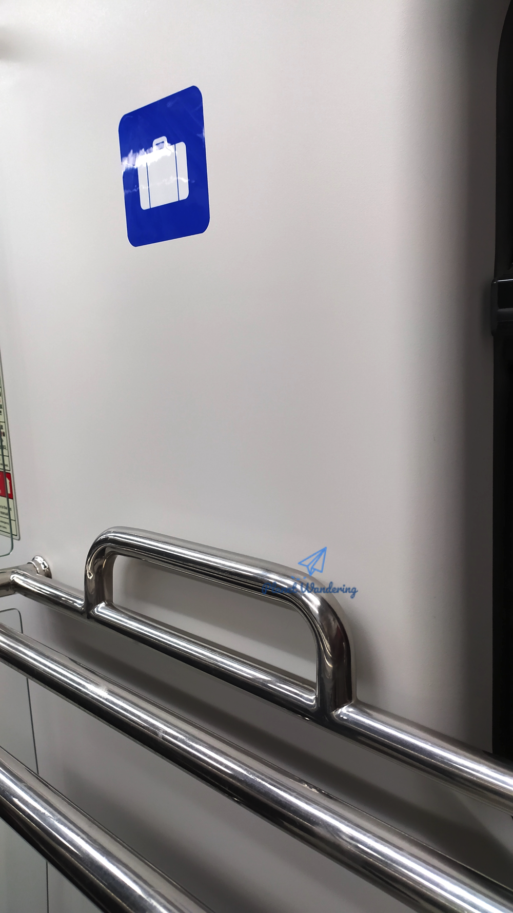 만약 짐 보관 공간이 멀리 있고 손님도 많다면, 문 가까이에 있는 중앙 기둥 손잡이를 잡고 가방은 발로 잡고 버티는 수밖에 없죠. 생각하면 조금 부담스러운 상황이지만 막상 닥치면 어렵지 않게 버틸 수 있습니다.