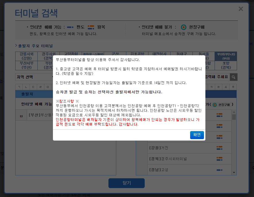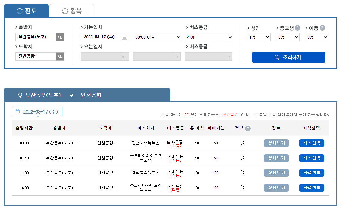 부산에서 인천공항으로 가는 또 다른 방법으로 고속버스가 있습니다. 부산 시외버스터미널에서 우등고속버스를 타고 5시간 30분 후에 인천공항에 내려주는 거죠. 짐 싣기도 편하고 좌석도 안락하지만, 중간에 휴게소에도 가겠지만 5시간 반을 버스를 탄다는 건 쉽지 않은 선택이죠.