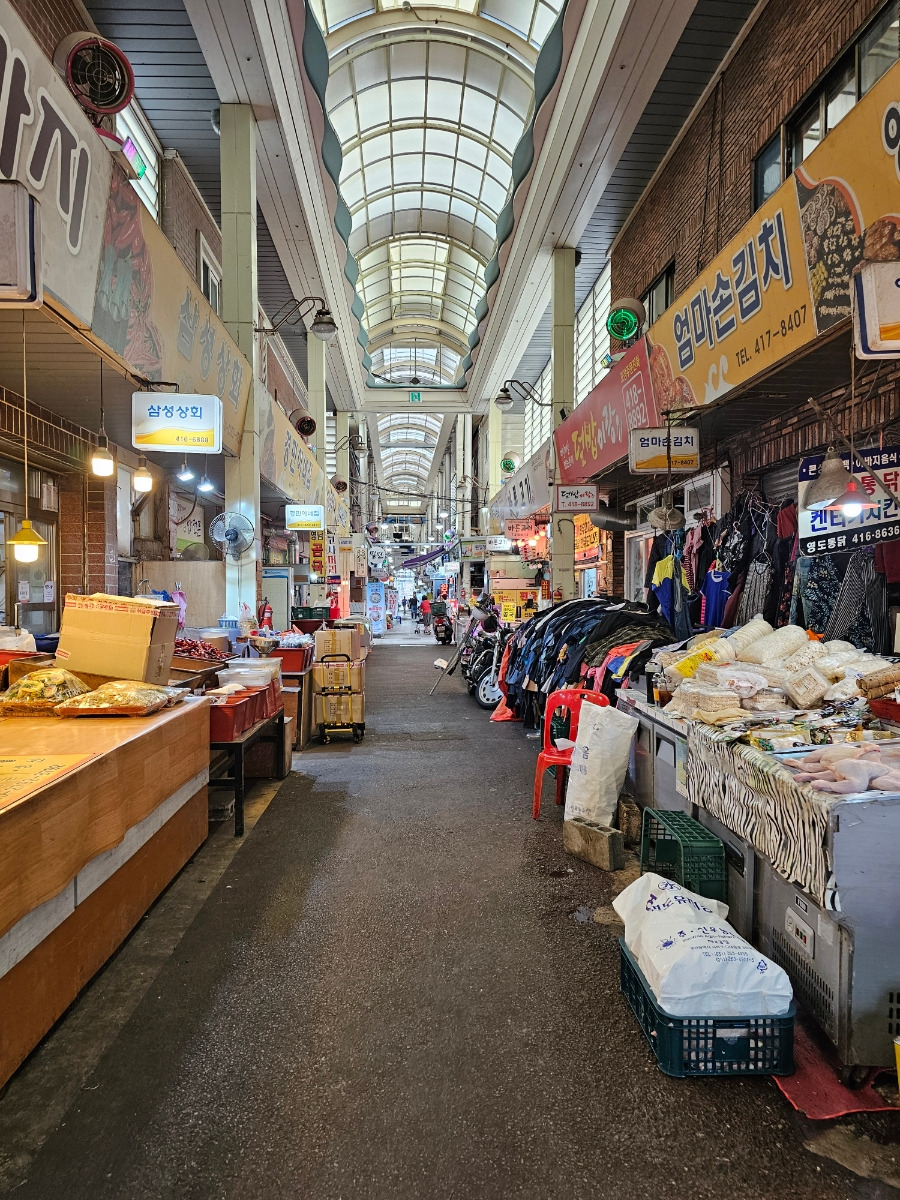 봉래시장의 짧은 시장거리를 지나면 훨씬 규모가 큰 남항시장이 나옵니다. 영도를 대표하는 시장이자 부산에서도 손꼽히는 대형 전통시장입니다. 시장 이름에서도 바다 분위기가 풍기고, 시장 곳곳에서도 바다 옆 시장임을 느낄 수 있죠.