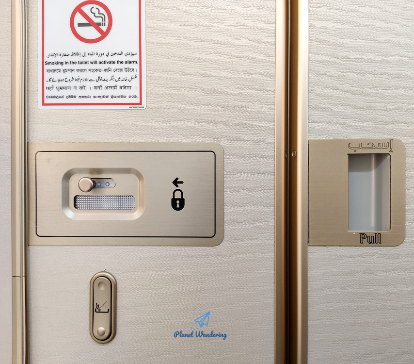 이어지는 이야기는 에미레이트항공의 비즈니스 클래스 화장실입니다. 비즈니스클래스는 좌석도 넓고 안락한 만큼 화장실도 그럴 것 같지만,, 약간의 차이 밖에 없습니다.
