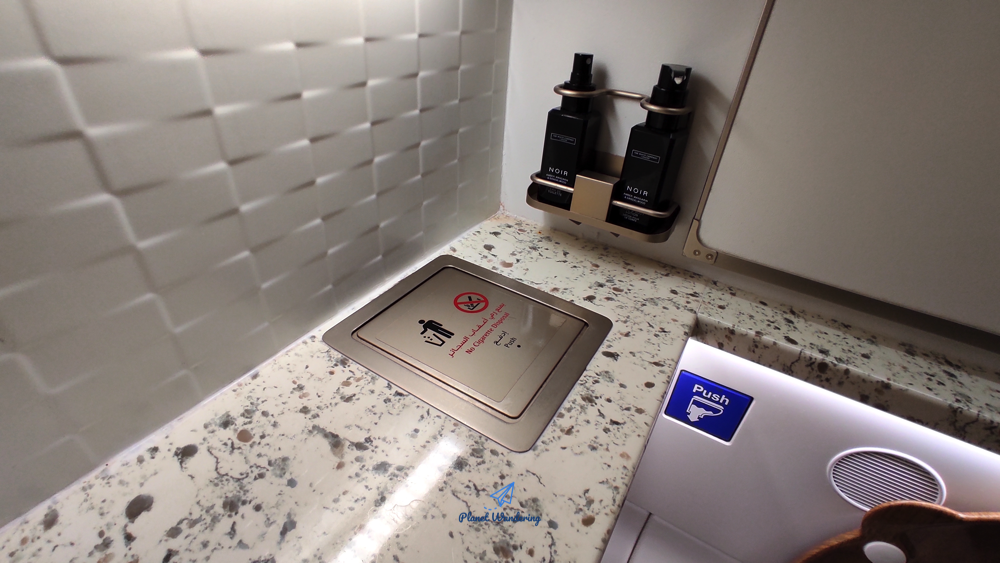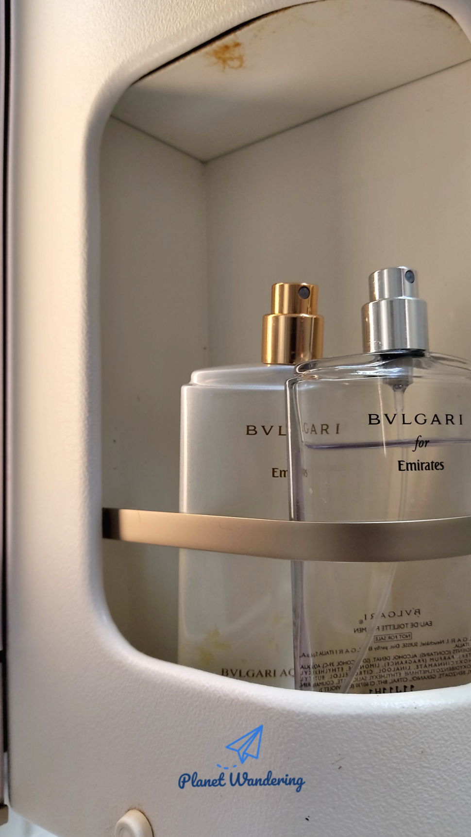 럭셔리를 추구하는 에미레이트항공은 이코노미클래스 화장실에도 향수와 로션을 비치해두고 있죠. 쓸 일이 많지는 않은데 향수 같은 경우는 화장실에서 나올 때 한번 뿌려주면 혹시 모를 악취를 없앨 수 있어 좋습니다.