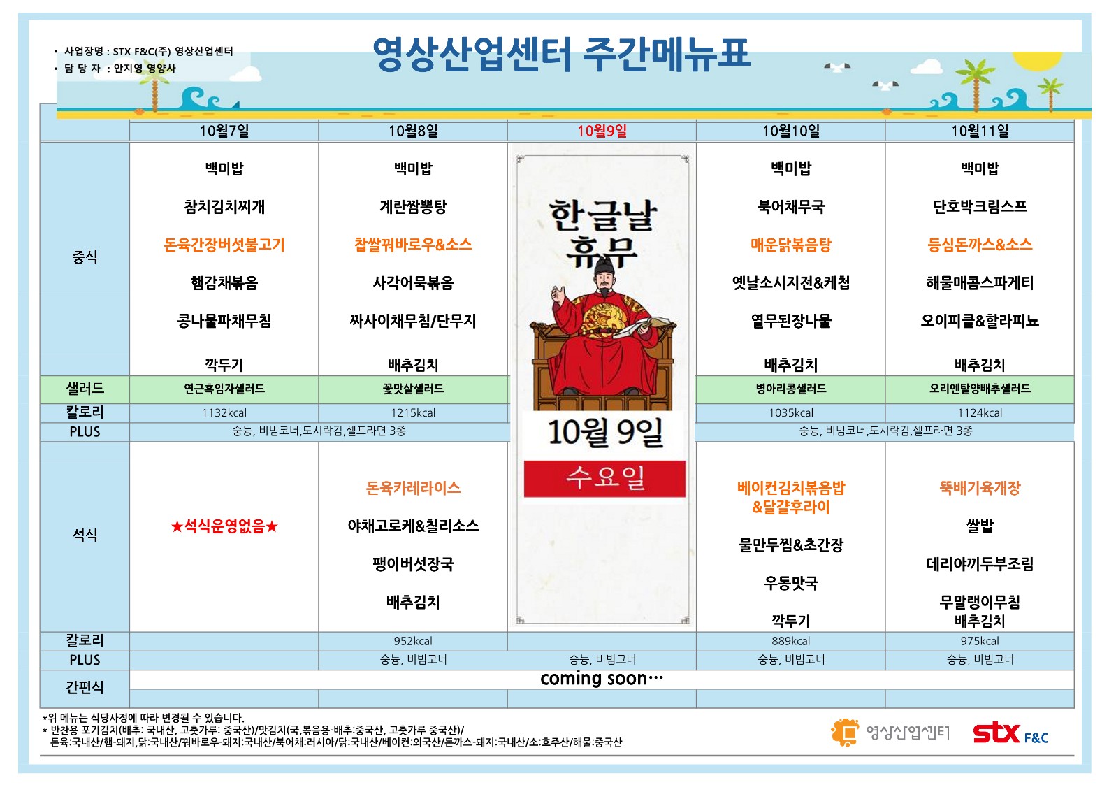 | 센텀시티 구내식당 식단표 2024년 [10월 14일 - 10월 18일] 주간 (2) | 2024.10.14 |