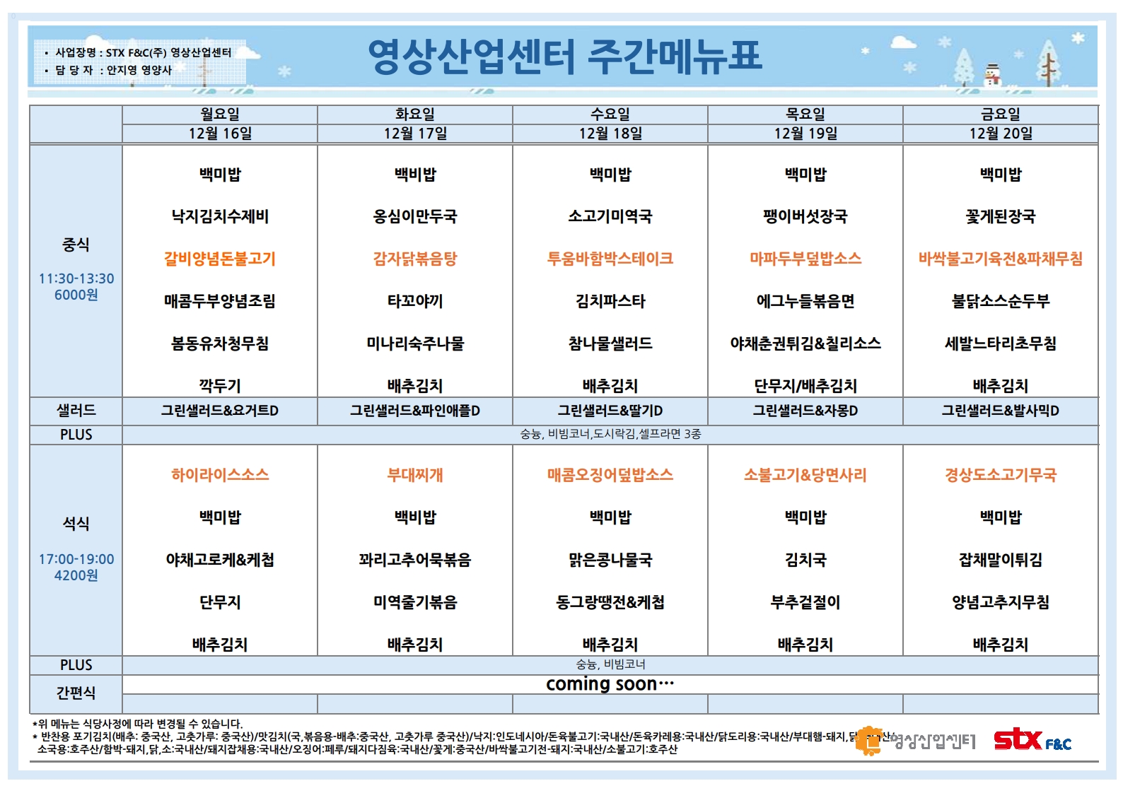 점심 6,500원 || 저녁 6,500원