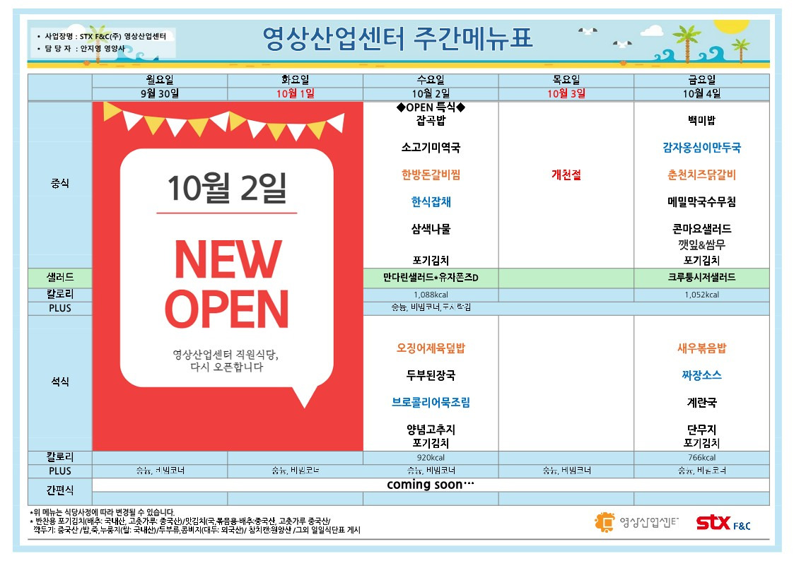 10월 2일 수요일에 오픈합니다!