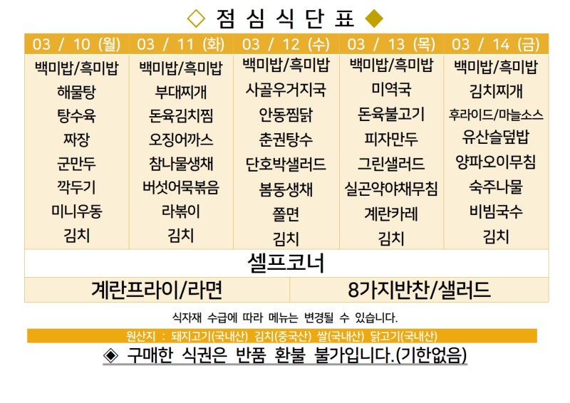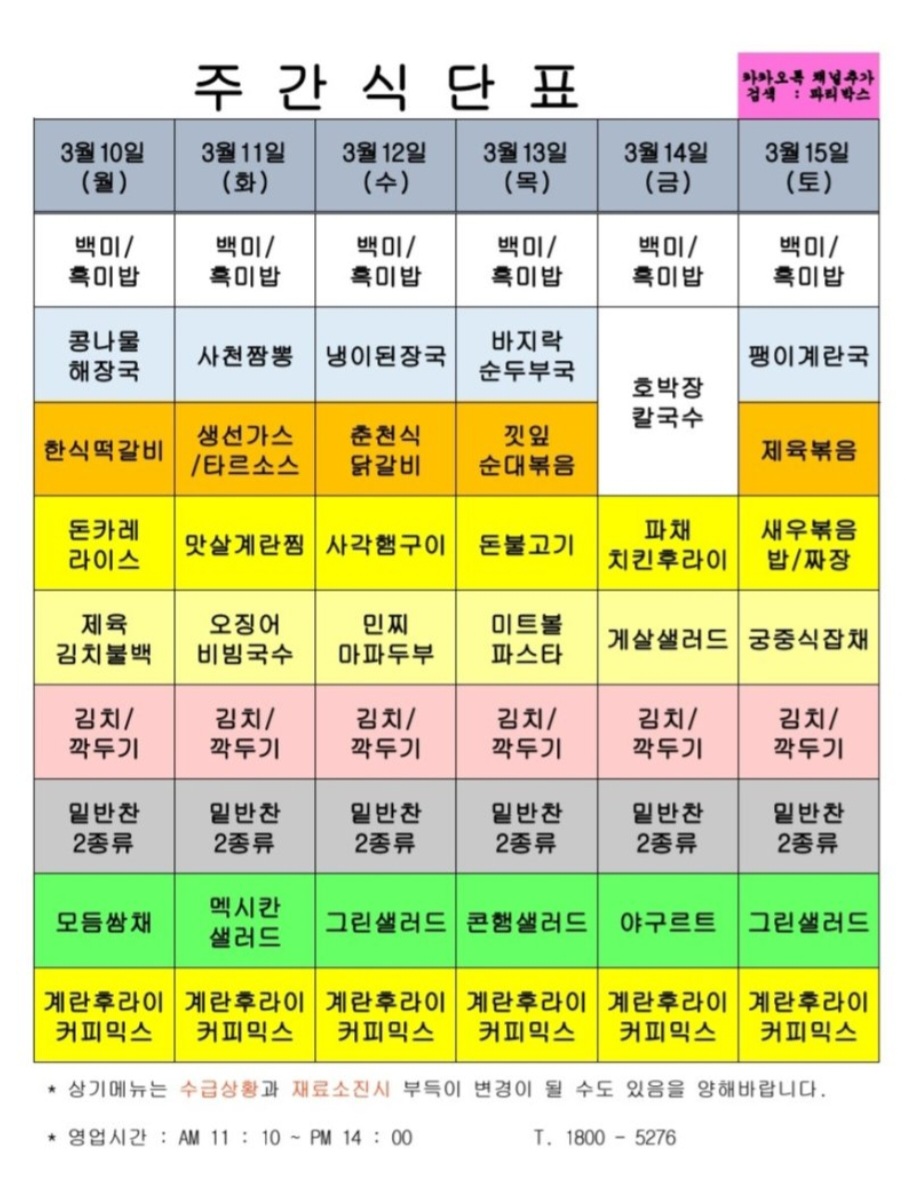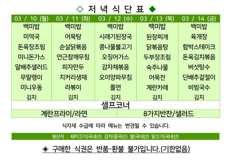 | 센텀시티 구내식당 식단표 2025년 [3월 4일 - 3월 7일] 주간 (1) | 2025.03.04 |