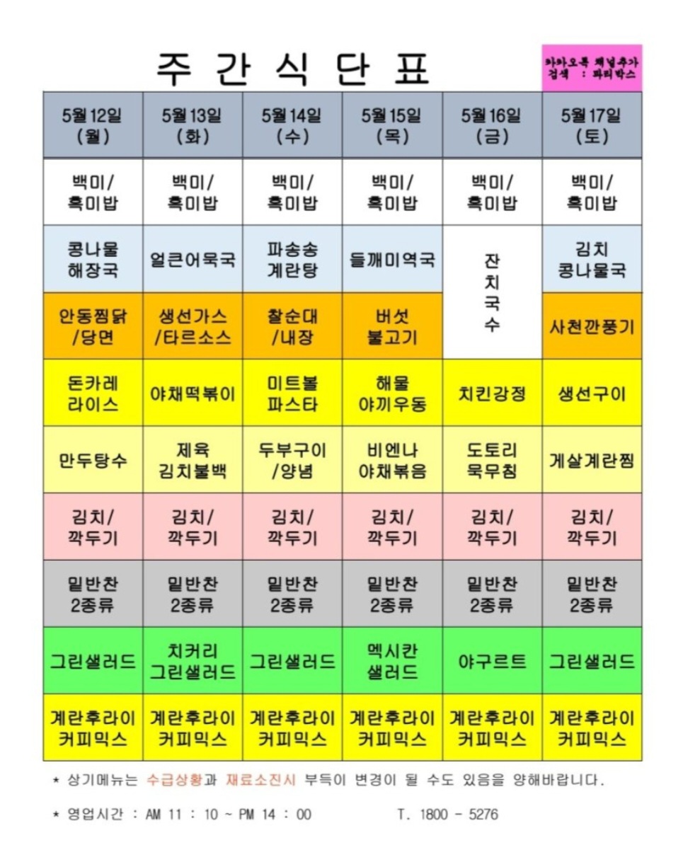 | 센텀시티 구내식당 식단표 2025년 [5월 7일 - 5월 9일] 주간 (2) | 2025.05.07 |