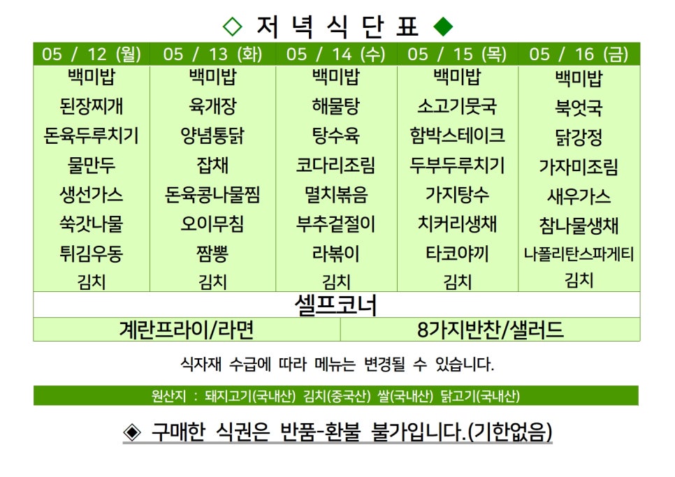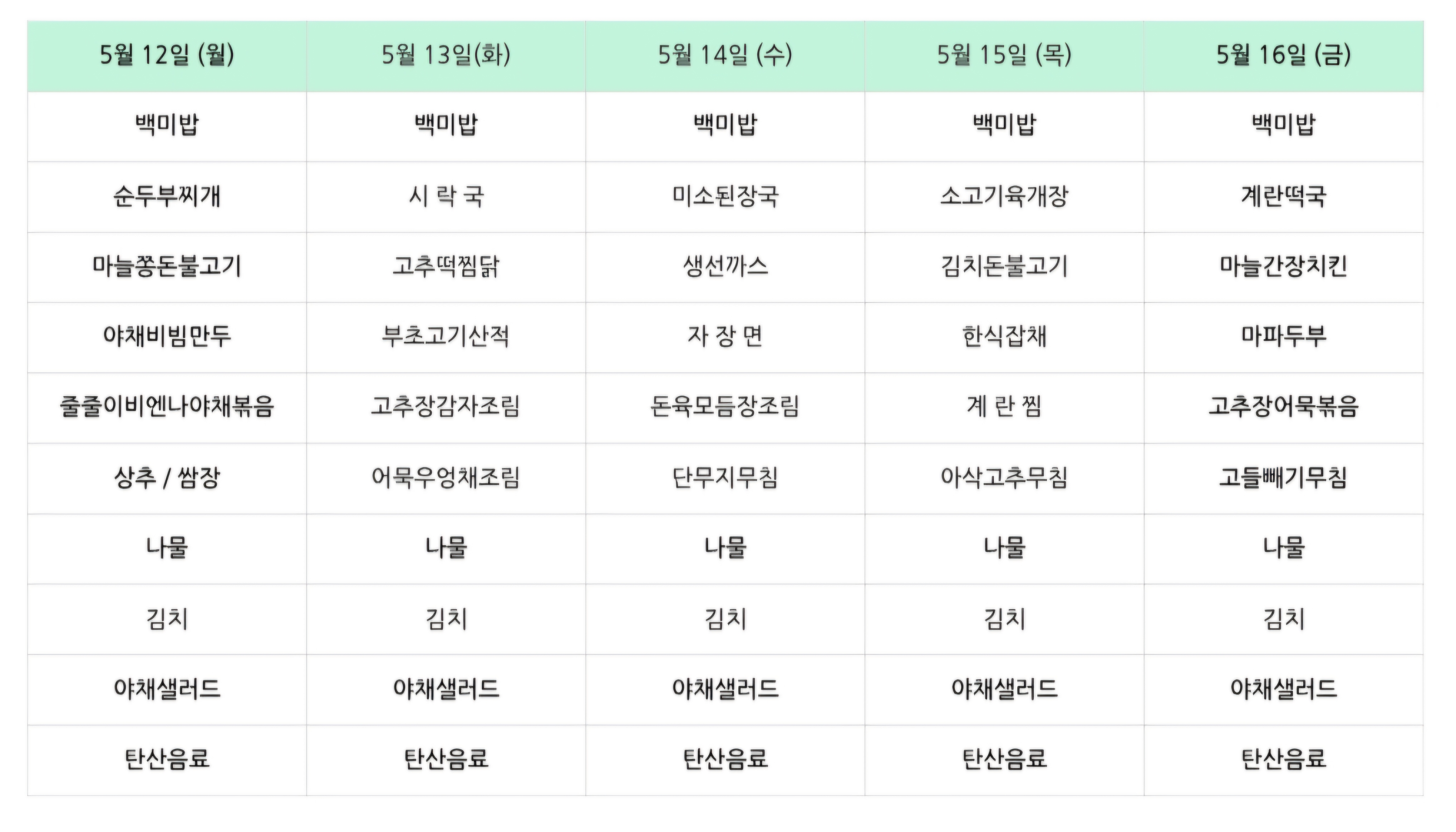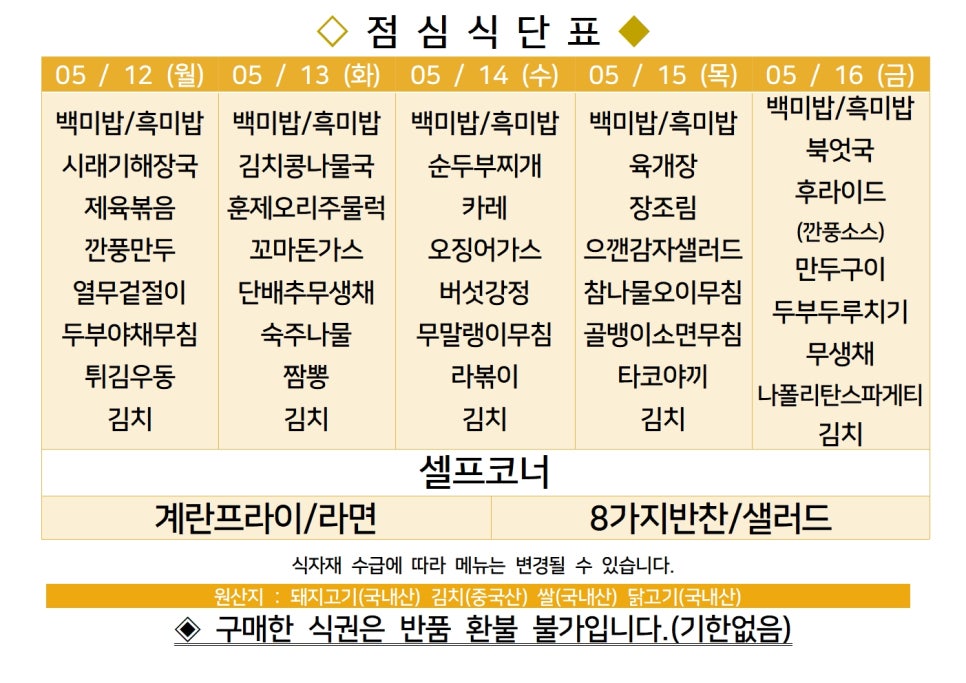 | 센텀시티 구내식당 식단표 2025년 [5월 7일 - 5월 9일] 주간 (2) | 2025.05.07 |