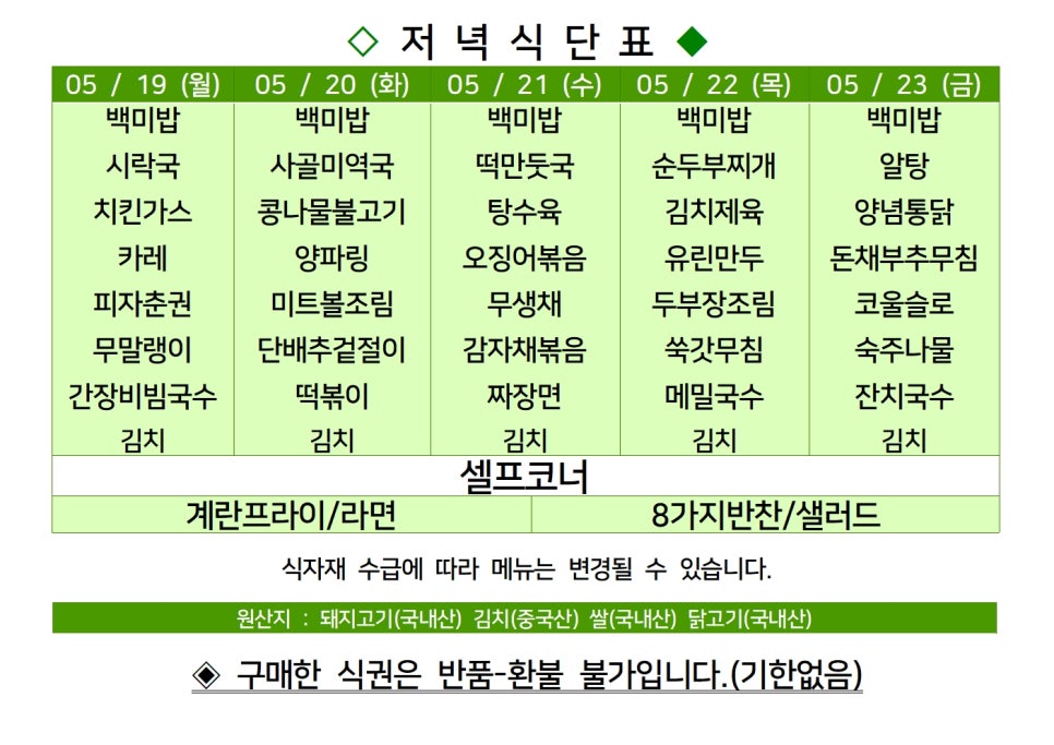 | 센텀시티 구내식당 식단표 2025년 [5월 7일 - 5월 9일] 주간 (2) | 2025.05.07 |