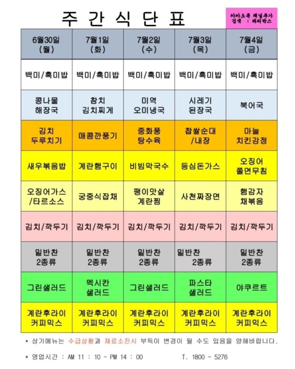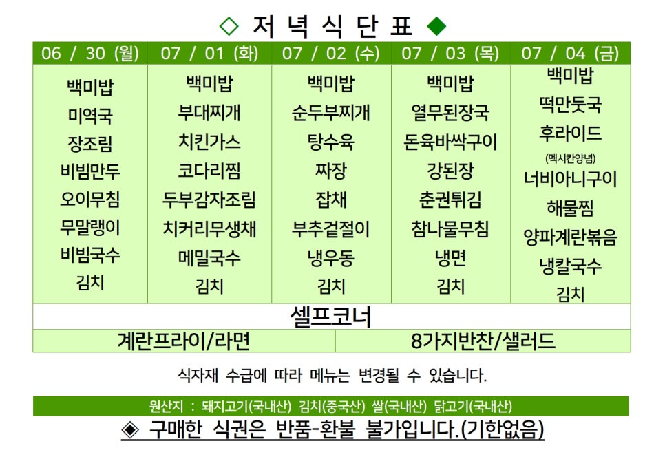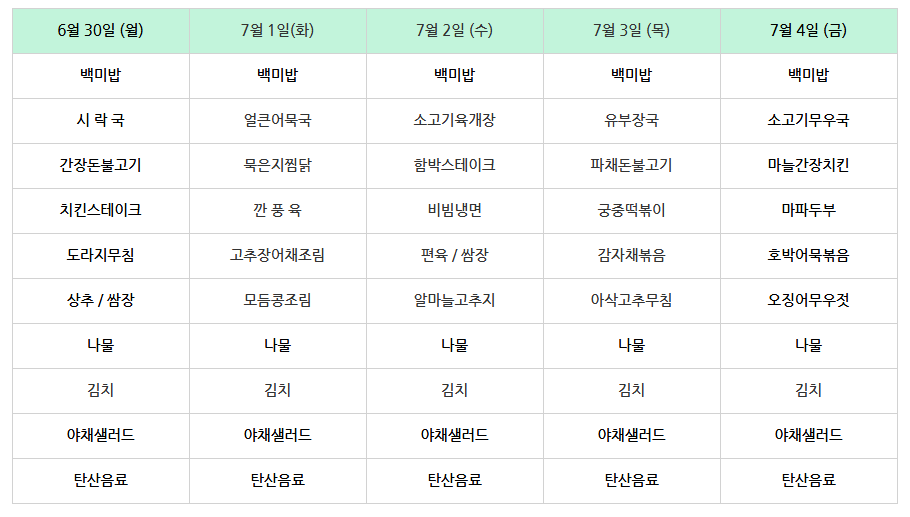 | 센텀시티 구내식당 식단표 2025년 [7월 7일 - 7월 11일] 주간 (0) | 2025.07.07 |